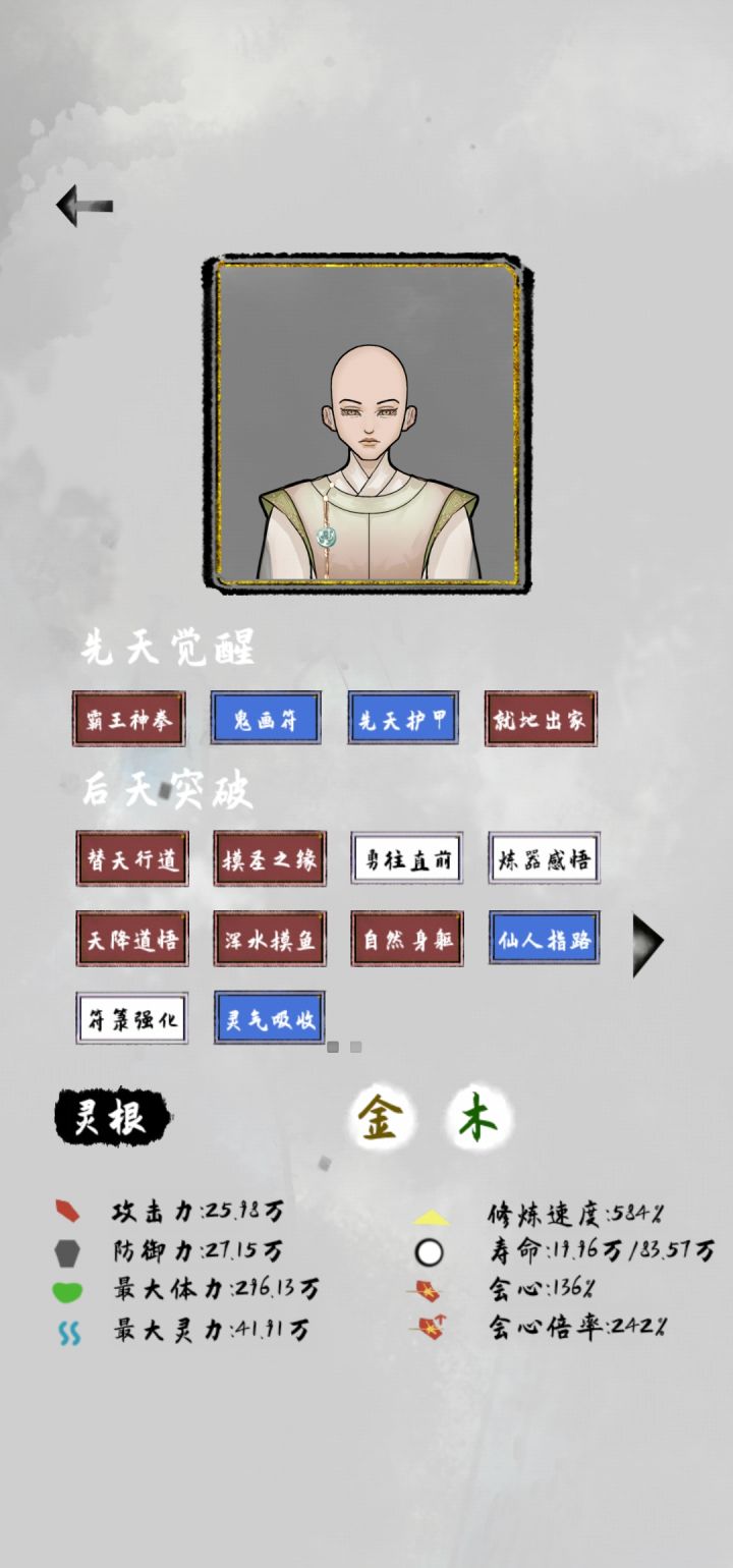 开局先刷个必得合适灵根的天赋,火神转世或者其他的,再刷个木头人。觉得这两天赋特好,不然好武器用不了,修为猛掉。看个人吧!