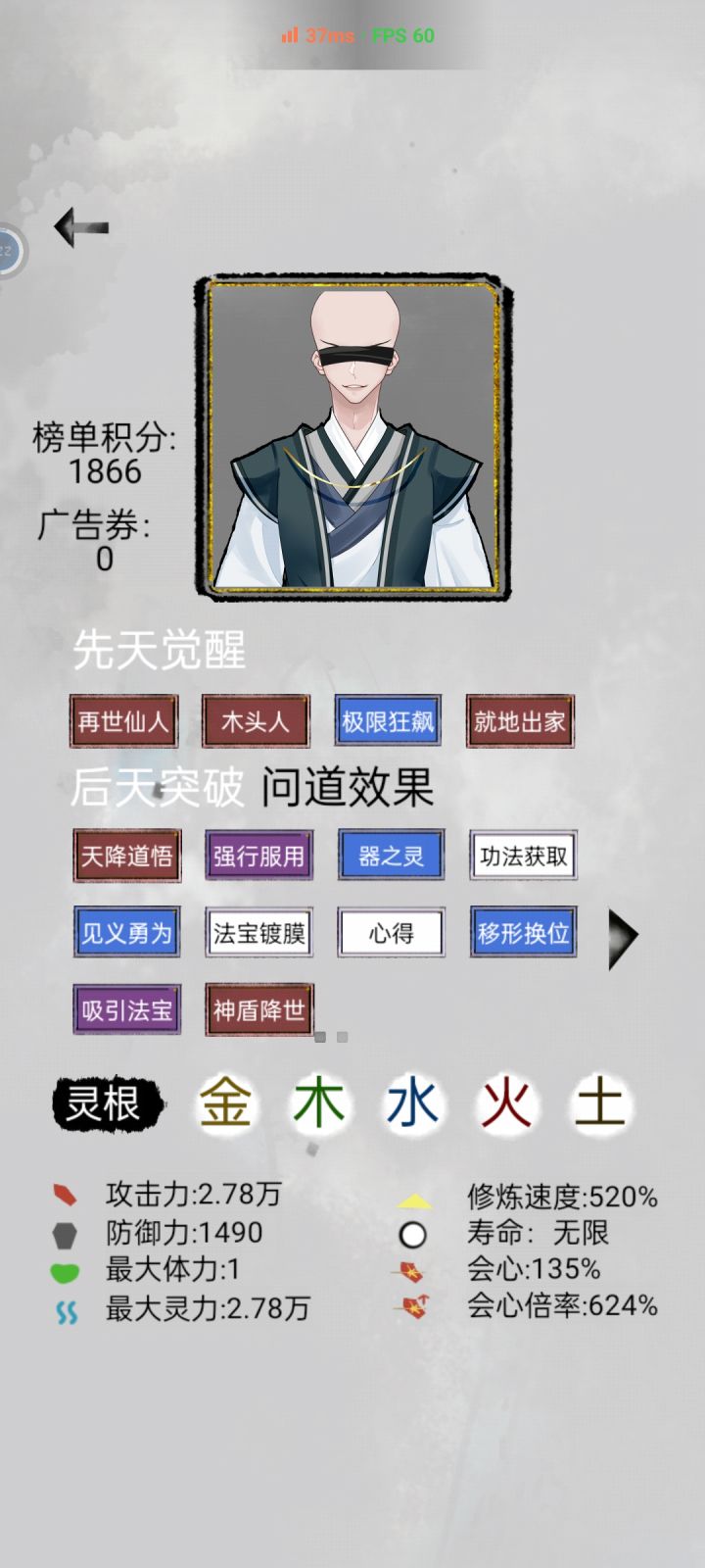 玩了几十个小时感觉已经玩遍了,给大家普及哈,或许我这篇攻略写出来就减少了兄弟们的极大的游戏体验!不过也给那些玩不到原始天尊的兄弟一些攻略。1 无敌攻略开局相貌选和尚(别的也行主要是和尚匹配光之意志(没放过一个人最大生命值加百分之五)和五行都要的修炼降低的惩罚!先天属性选五行(就是金木水火土)都要以免法宝用不上先天词条 (必须)没有选五行都有的点先天羸弱 炼器大神(炼器不会失败)后天词条