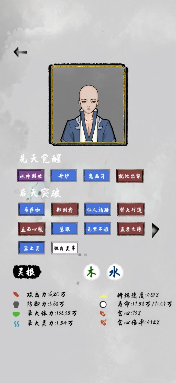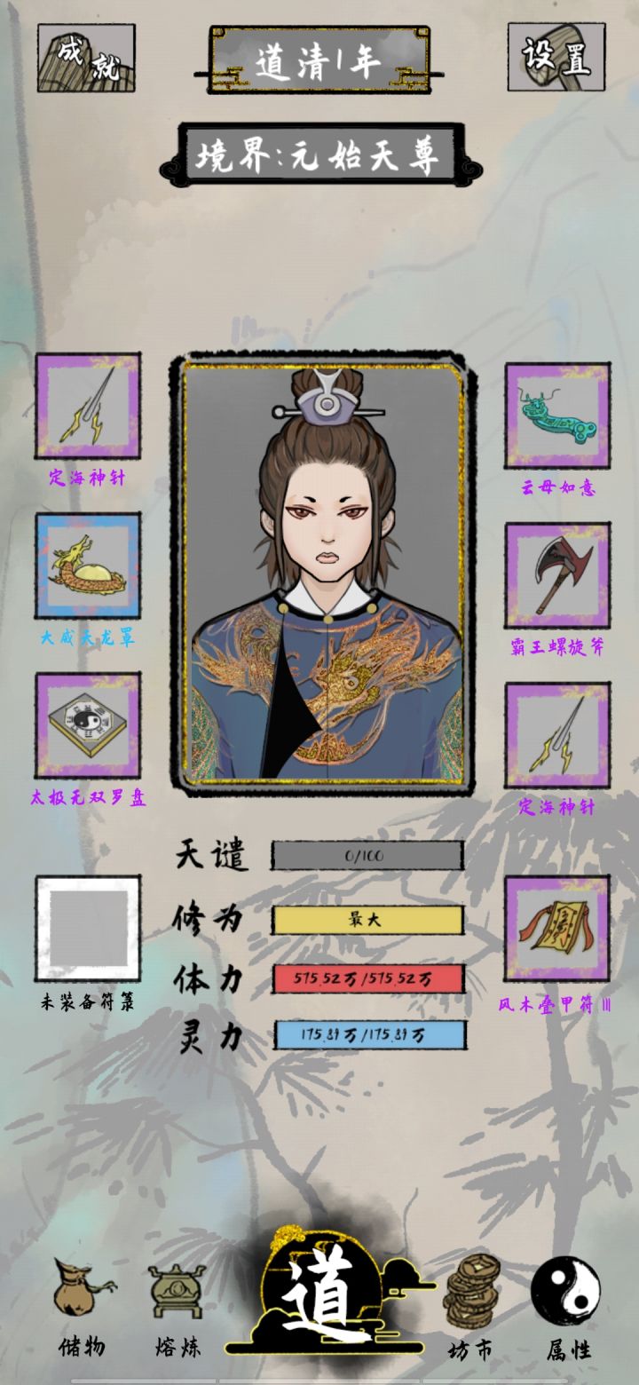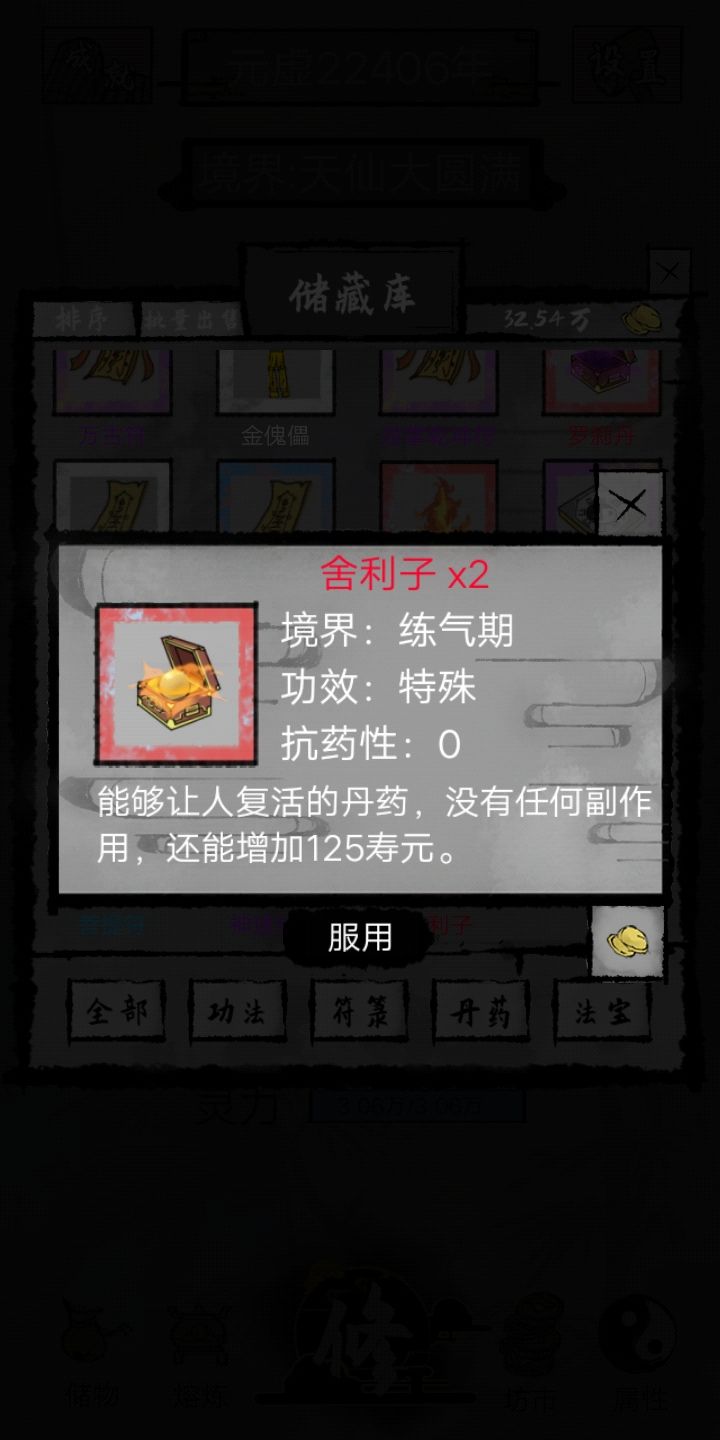 玩了得有半个月了,虽然是时不时玩一两把,始终卡在金仙,总是寿命不足,回来再论坛上看看大佬的攻略丹炉丹体也去尝试了一下,结果没成功,后面就想还是走符路。