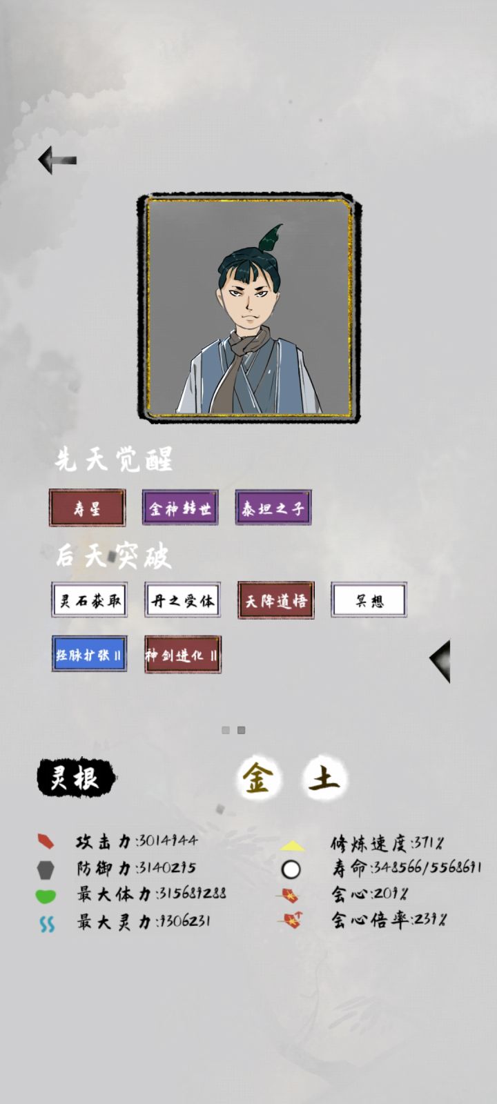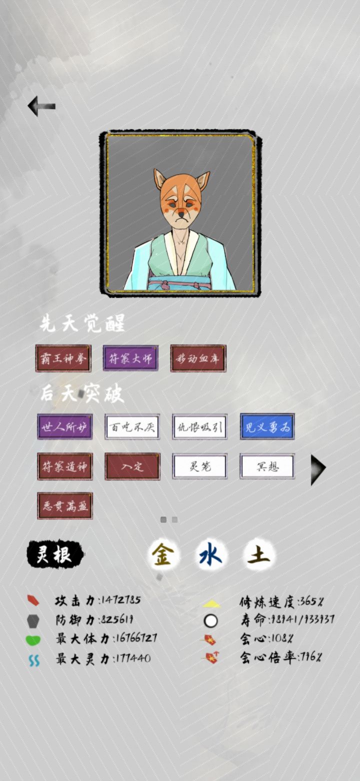 金丹元婴(攻防体灵)×1.8 寿命×2.3