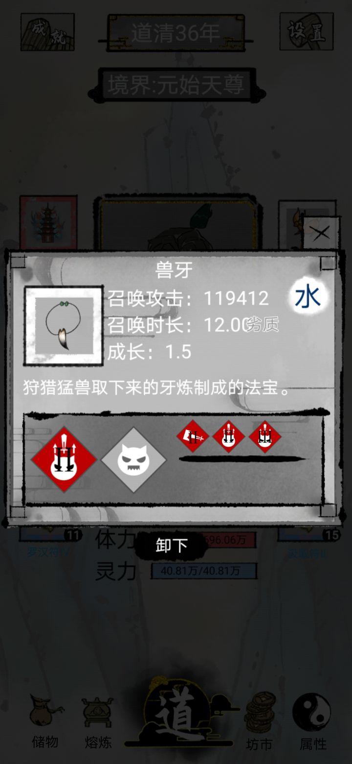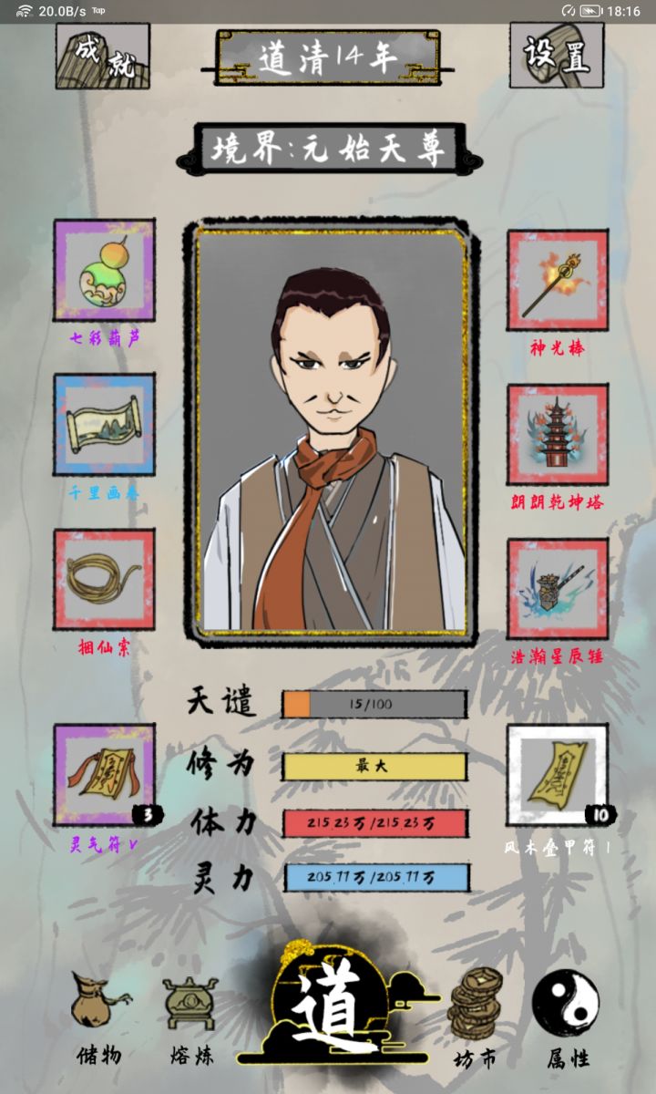 更新以后,再次玩,忽然发现灵石需要的竟然更多了,没有足够的灵石就是碰到机缘也是尴尬😂,好在寿命够多,虚晃一吃,一颗药偶尔可以多吃几次,盗圣和法宝获取可以用获得的法宝换灵石避免灵石不够