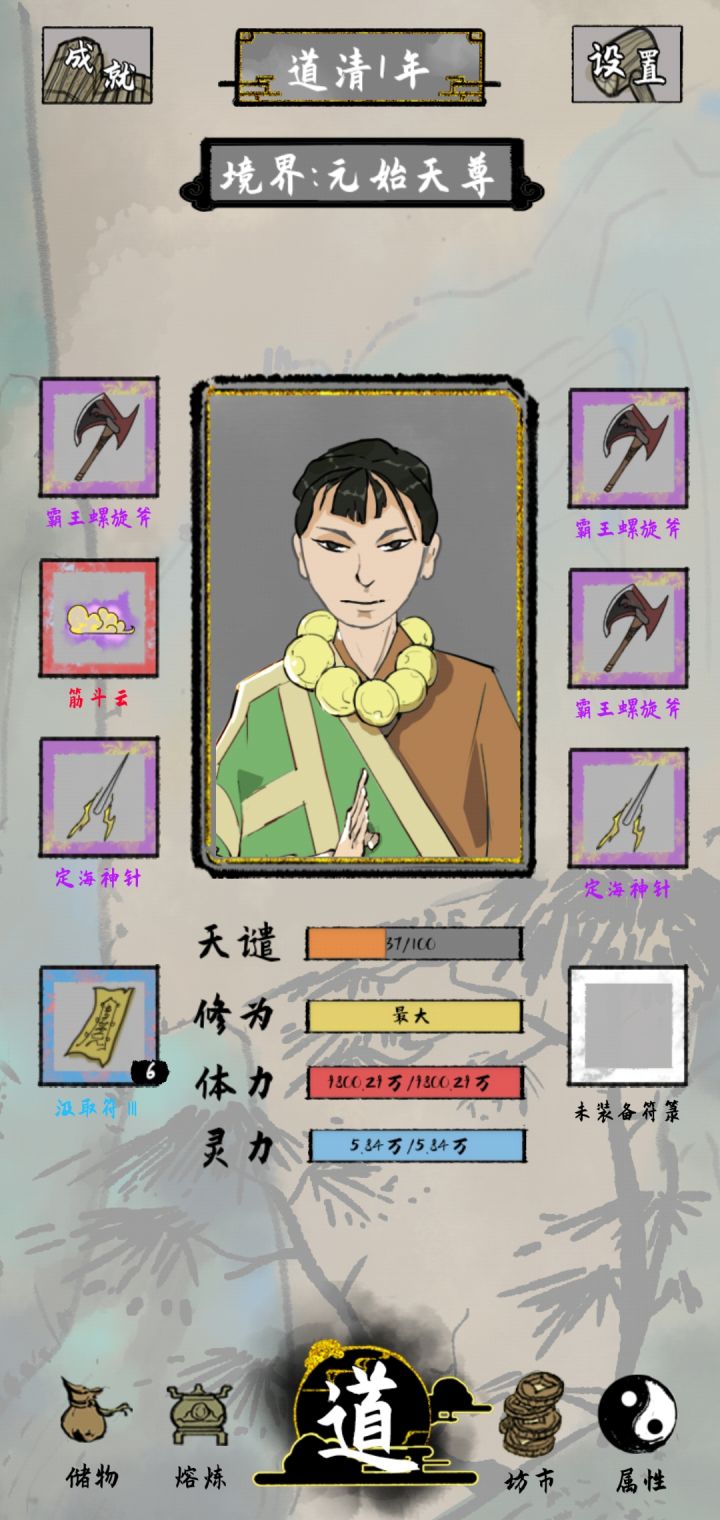 最后 到了元始 慢慢攒鸿蒙装备或者灵石什么什么之类的 快到寿命了把你的白装备全卖 为下一把做准备 这样一把一把反复你就可以刷的更高 解锁成就玩别的套路(符咒仙人 仙剑近战 召唤师等等)