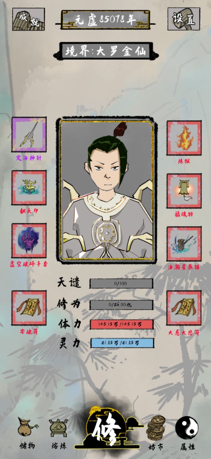 有主人公修炼速度加成不用担心老死都突破不了了,一定要搭配转世能让你获得的法宝能用,熔炼没有天赋别碰。把法宝该卖就卖了,留自己用的就行。钱用来买属性药和修炼。重点给你们介绍一下御剑者这个天赋:近战法宝无冷却,就跟机关枪一样,贴身一套秒怪!