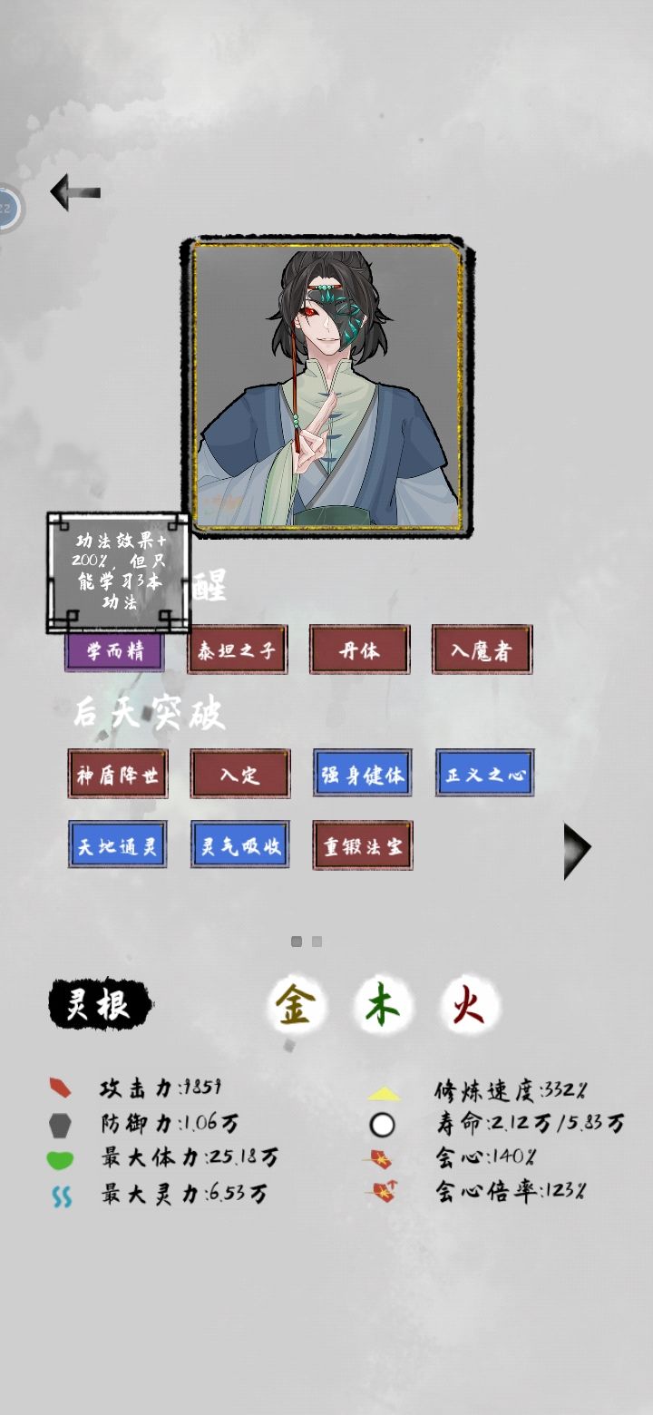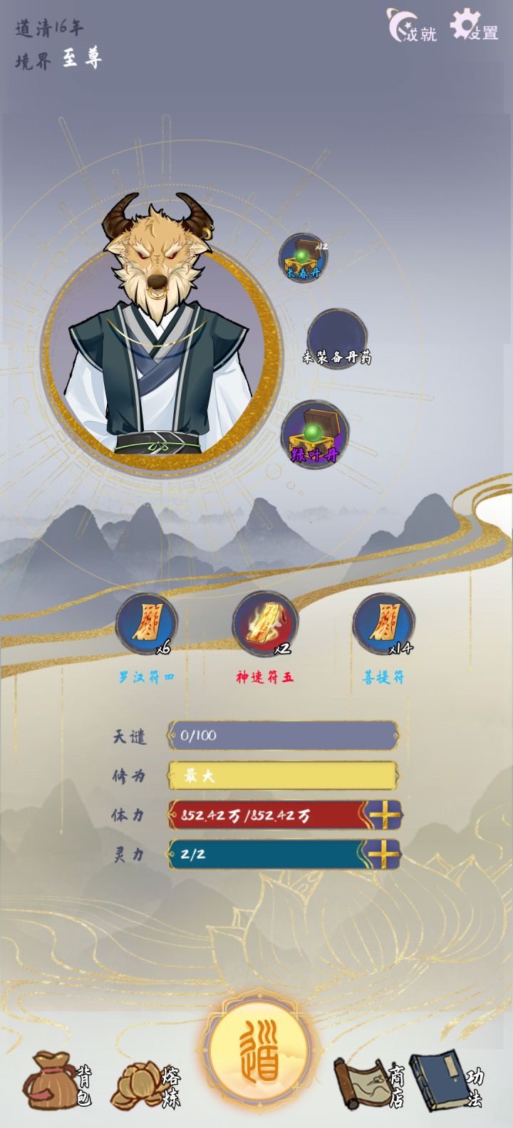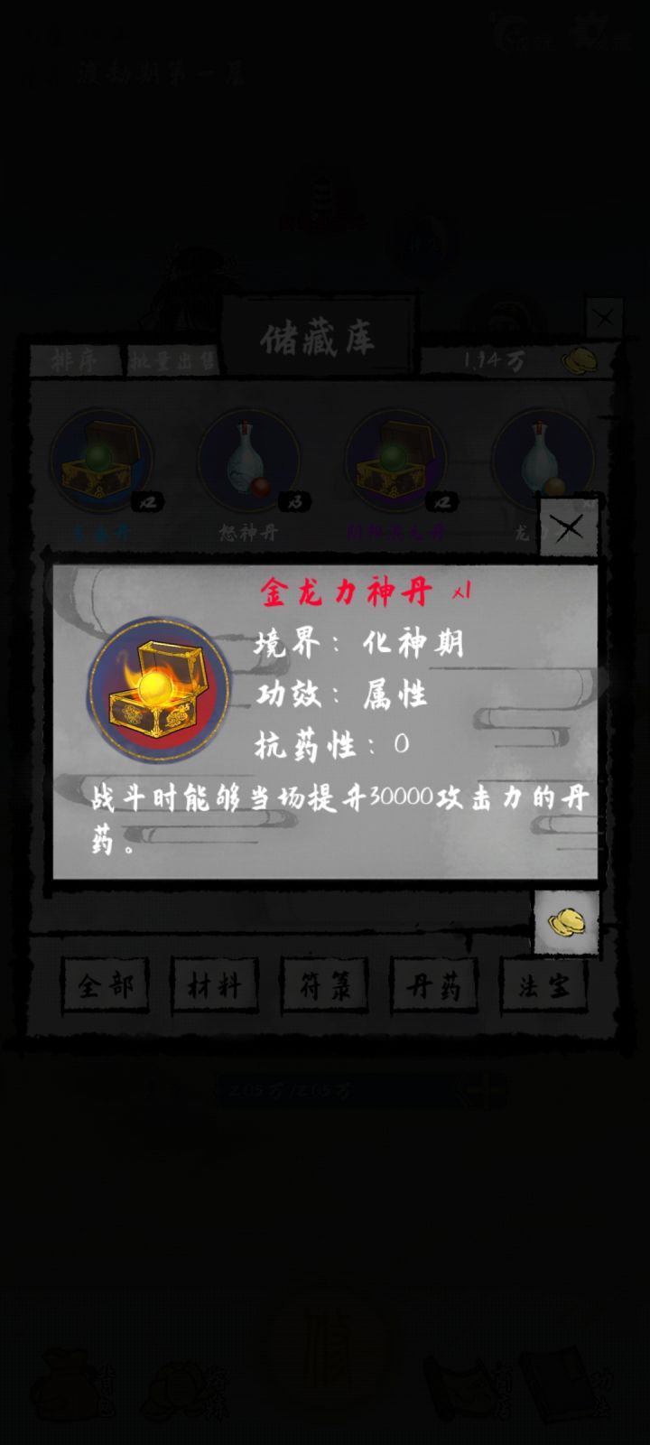 作者大大发现bug了,选了丹药抗性之后无法装备丹药从而无法吃丹药了