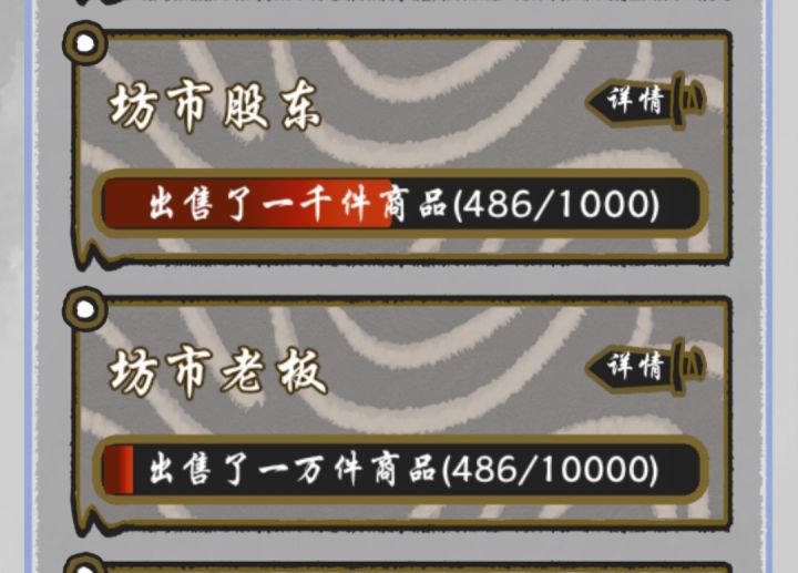 出售商品的成就有bug,一定要手动一个一个去点了卖才算,批量出售不算