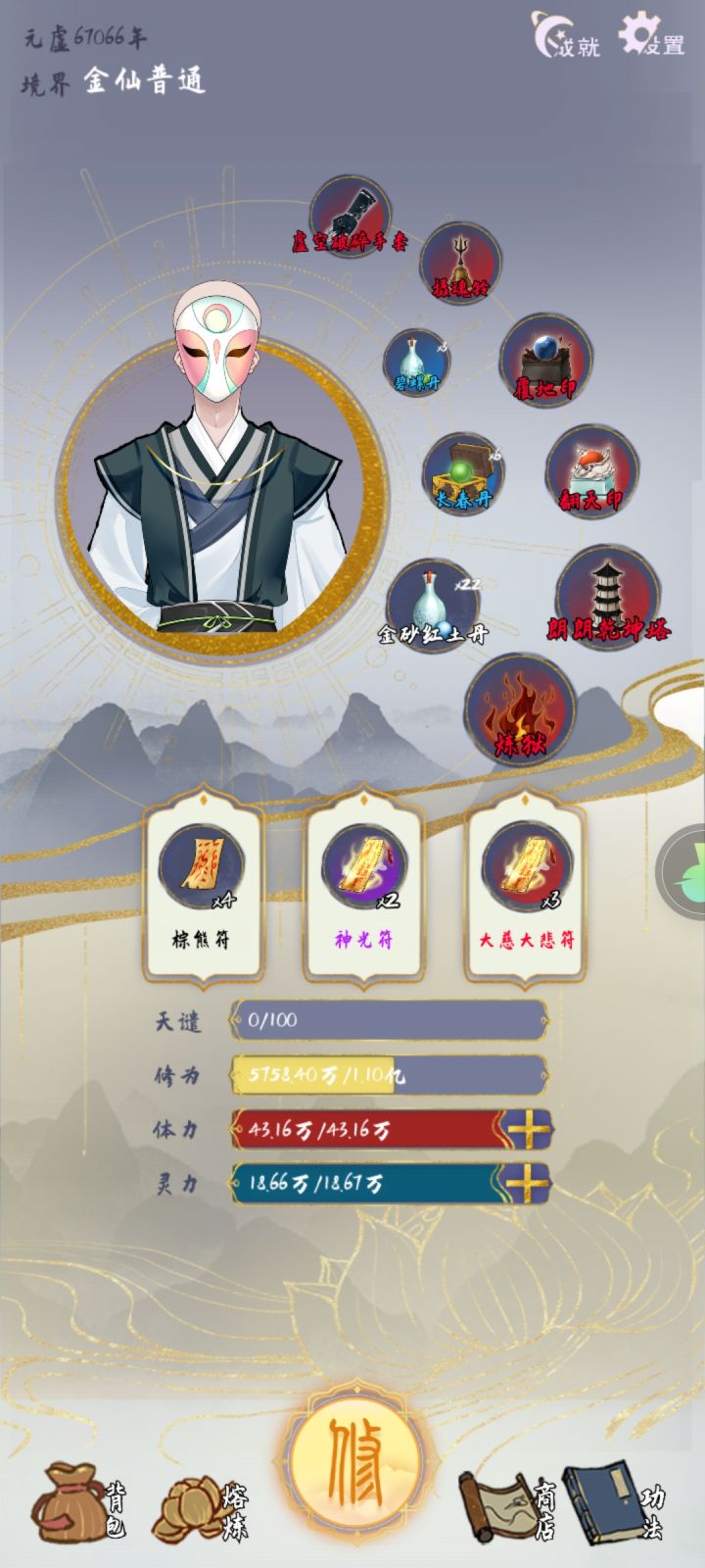 玩法:建档的人物角色形象、灵根天赋等都是随机刷新,只要你耐心好总能刷到自己喜欢的。游戏进程中遇到的事件也都是随机,游戏体验还是挺有意思的。但是有一点非常无语且崩溃,就是他学习功法的条件,感觉就是存心不想让手残党学,真的非常难受,转数太快了,很难点中,然后个人觉得决斗的体验也很不好,非要捏着人物去撞敌方,装备的丹药符箓分不出空来点,手速不快真的直接劝退。我反正已经被功法学习搞退了。以上都是个人