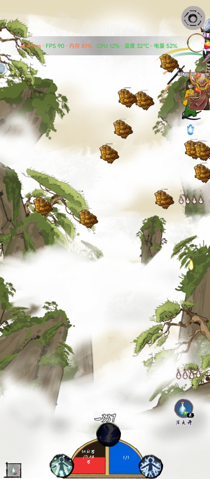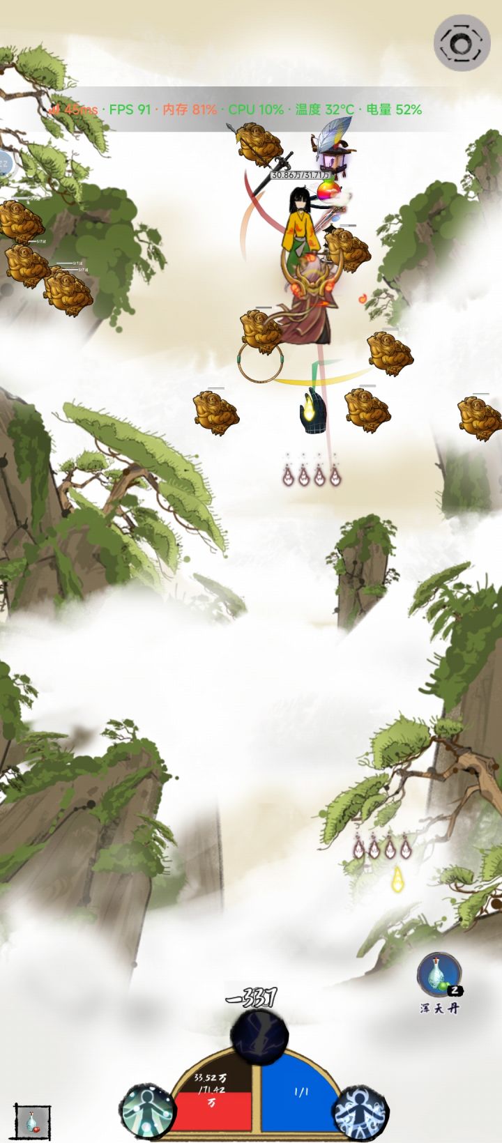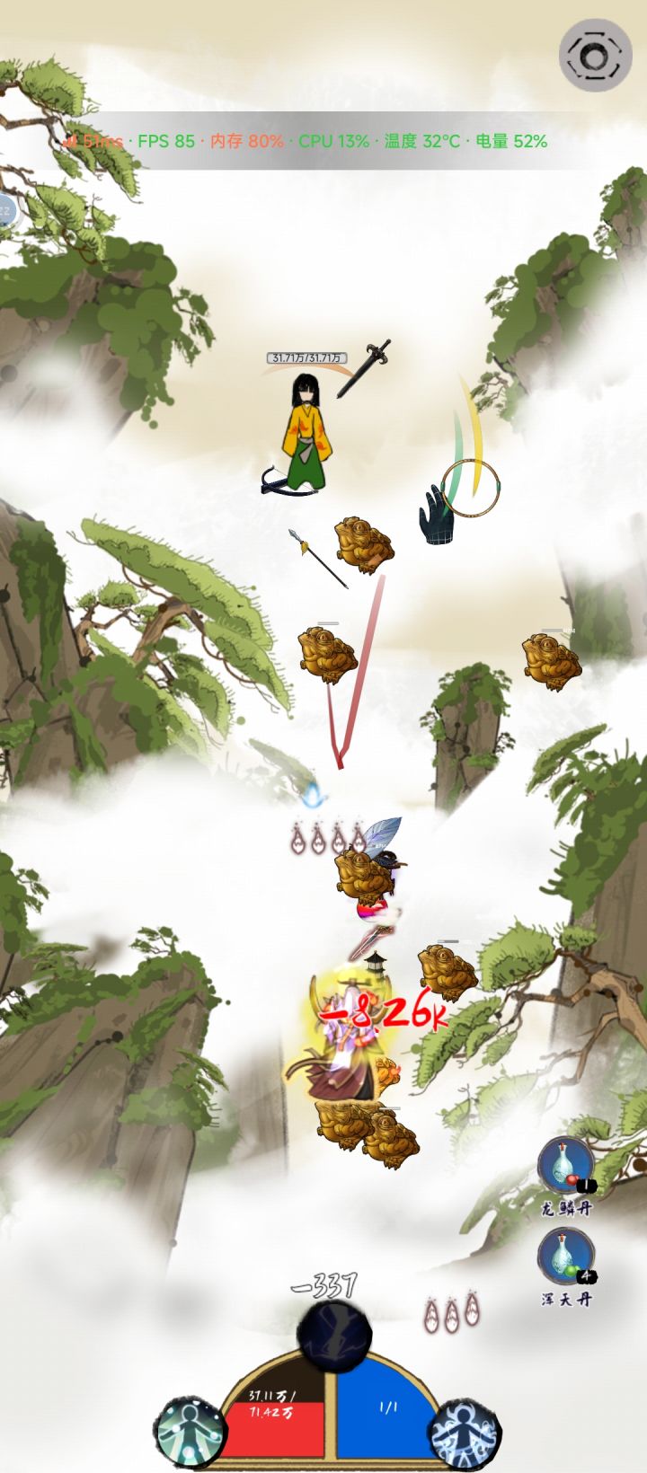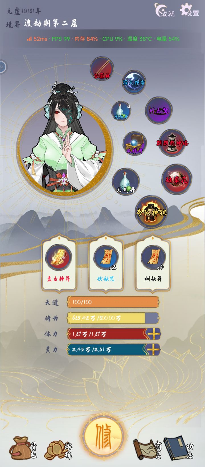 吃个加生命减蓝的丹药,把自己搞没了,蓝条就只有一,法宝都不打敌人了,真的无语😑,我有加丹药增益的天赋,血加75%蓝减105%,吃完后就成这个面板了。