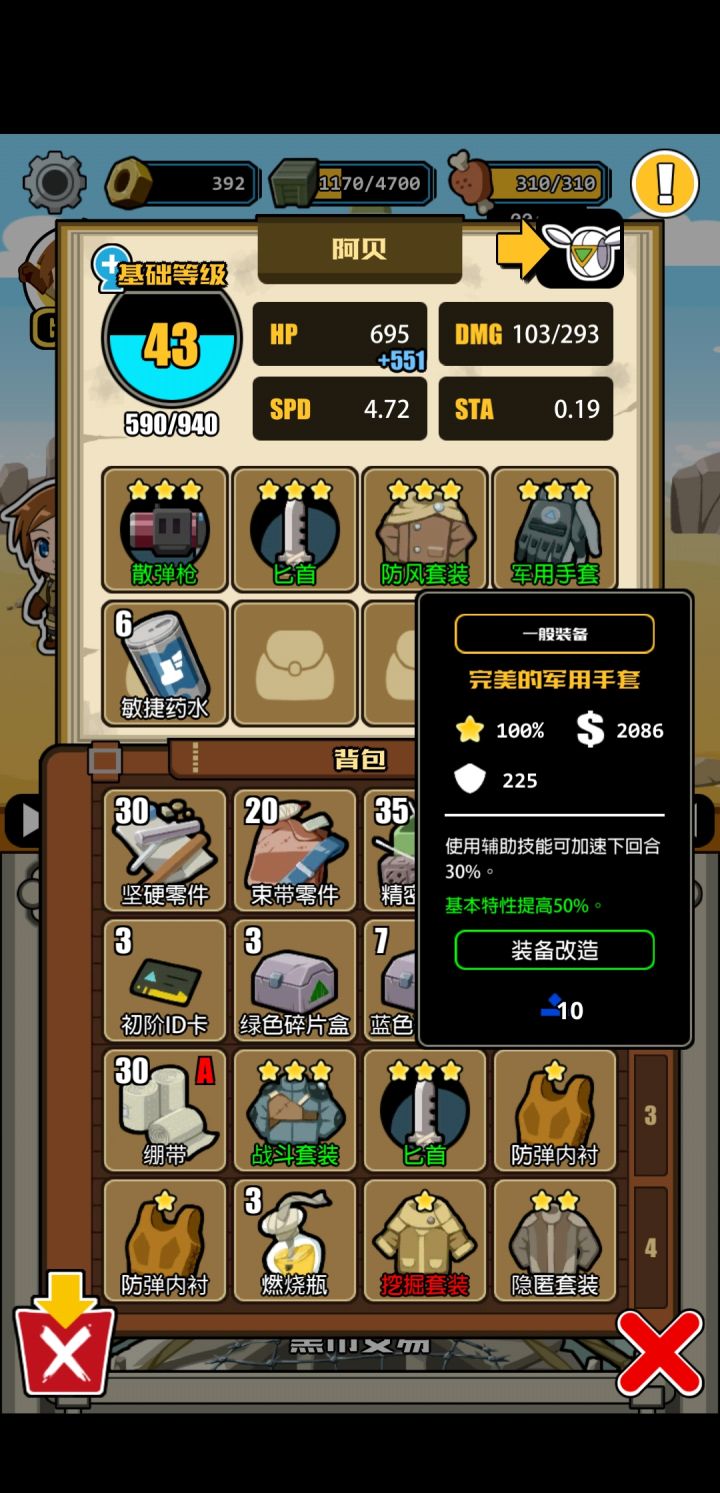 高配可携带军用手套加速0.2(完美词条可达0.3)