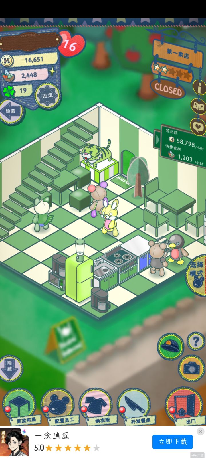 其实上面有几个问题在很多手游放置里面是完全不存在的……这个不知道是不是因为日本游戏(?其实我也不知道这是不是日本游戏,但感觉像是日译过来的)原因,很多细节本地化不够。至少我认为将购买家具和装修彻底分离开来是一个非常不利于高自由度放置的设定。