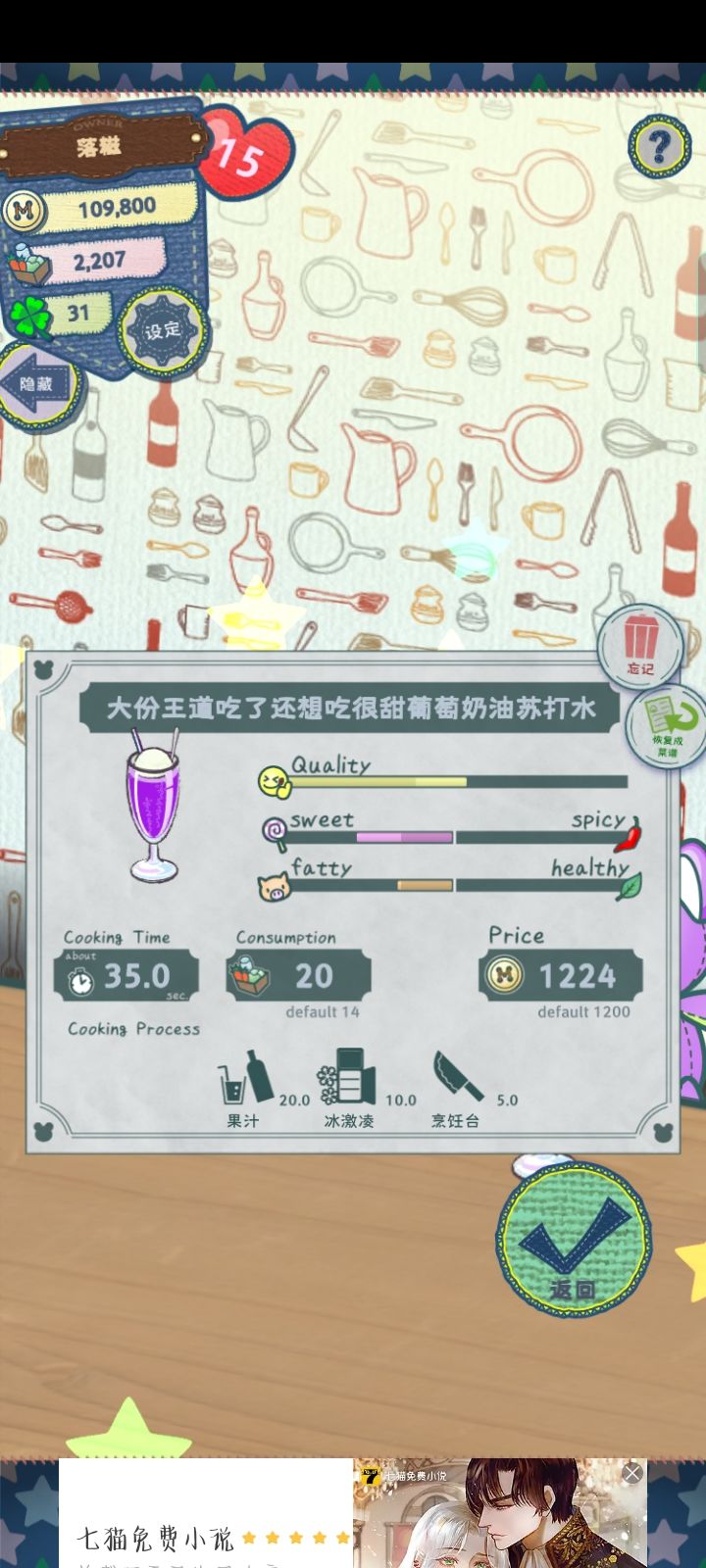 没错,又是我,我又来问问题了我研究出来好多新的菜谱,但是没有那些工具,比如说烤箱,冰箱,还有这个冰激凌机。而我现在才14级,等着家具不停的自己刷,能刷出来这三个东西吗?还是说我等级太弱?这三个机器都刷不出来。话说这个新饮品研究出来之后,令我震惊到名字也太长了,好想尝尝是什么味道