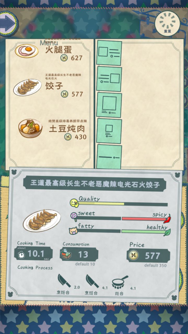 玩游戏时发现好多餐点不能做,第一次遇见,不知道是什么情况,以为是厨具没摆好,或是少了些什么,但调整后还是无法制作,之后又来更新,但还是没有解决,我刚玩游戏没多久,不知道这是bug还是我的问题,求解,谢谢🙏