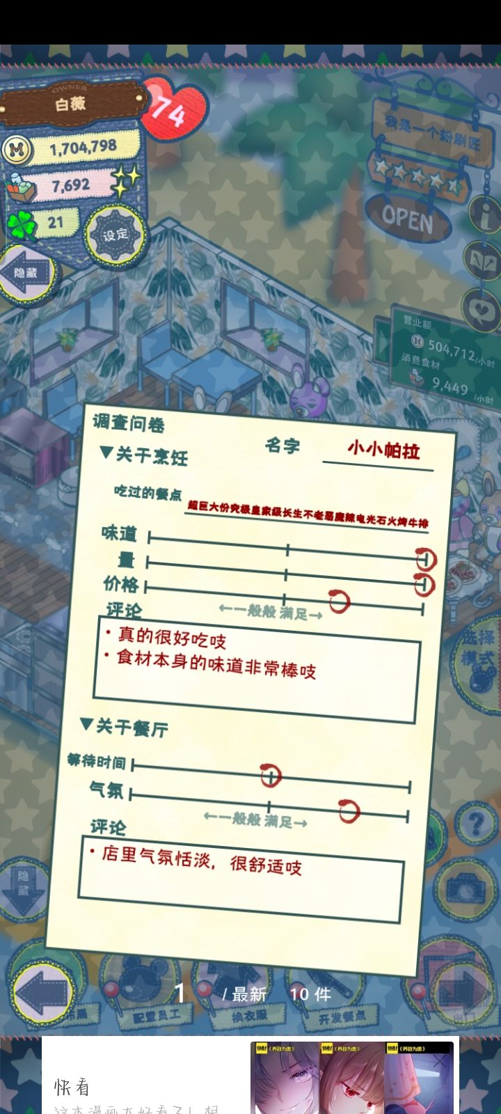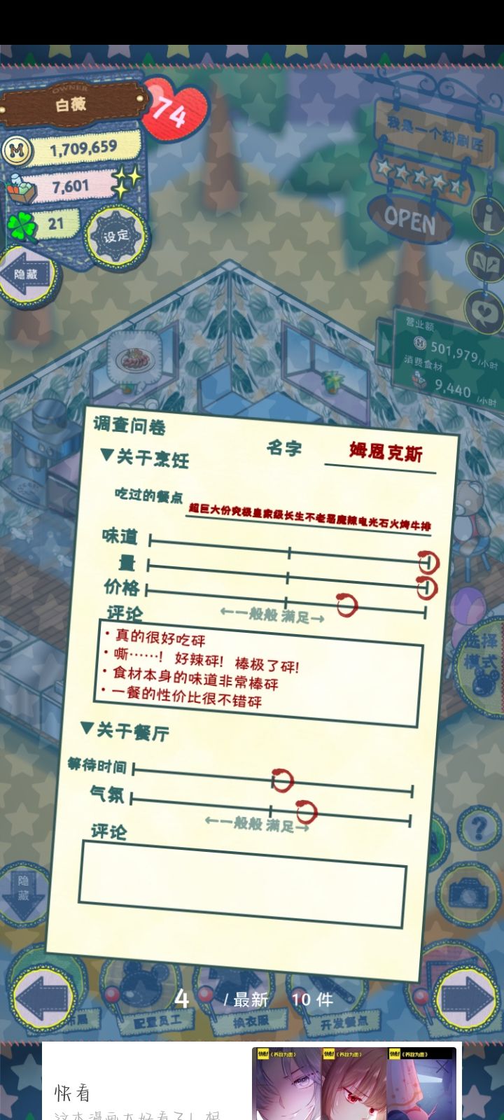 升了四星之后我也没干什么啊 退出去刷了会抖音 回来后营业额直接从150多掉到70几 客流量也减了好多 求问我该怎么把营业额升上去啊😭😭😭