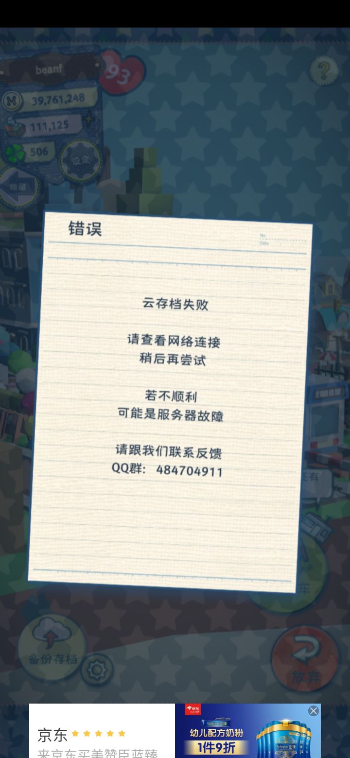 萌新继续求助...刚才更新完1.0.5还是不能上传存档,自从3天前开了2店3店就一直不能上传,移动网络家里wifi公司wifi都试过了不行,这到底咋办呀