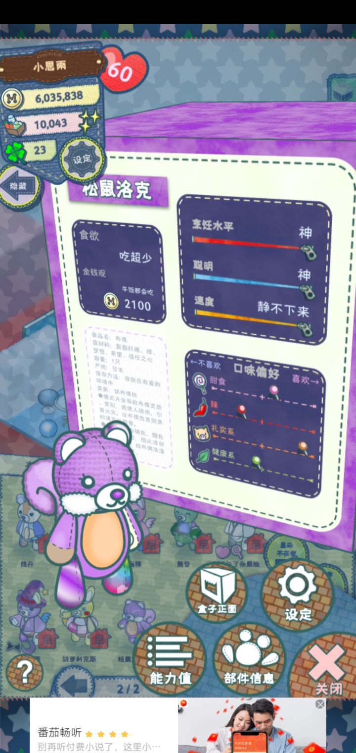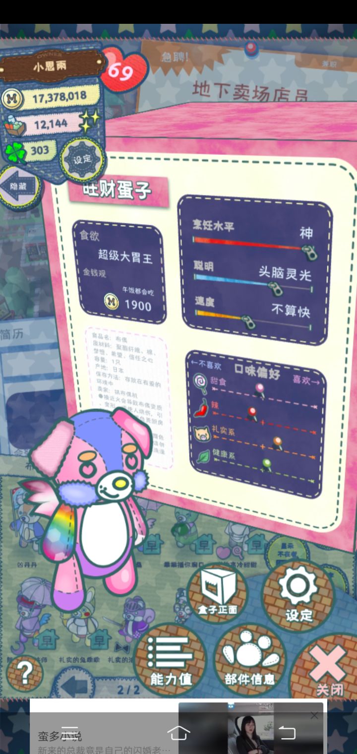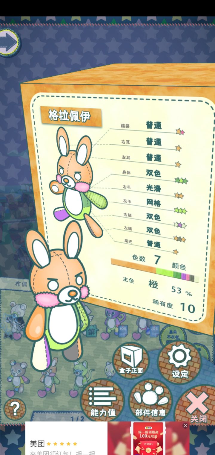 哇,第一次从娃娃机抓到这么好的,这是升完级后的把他送去兼职说不定能把属性叠满哇,我以为要想有满属性只能去挖🐒