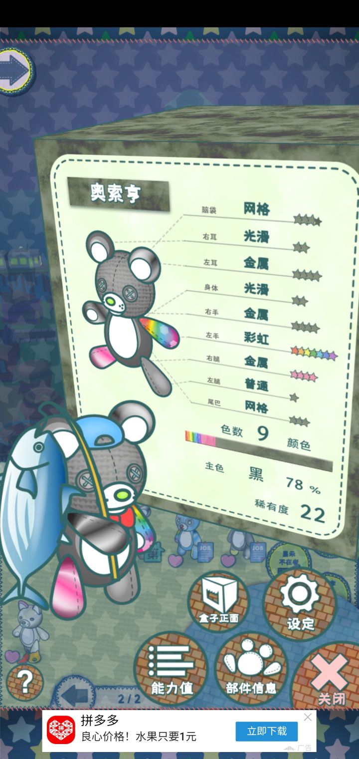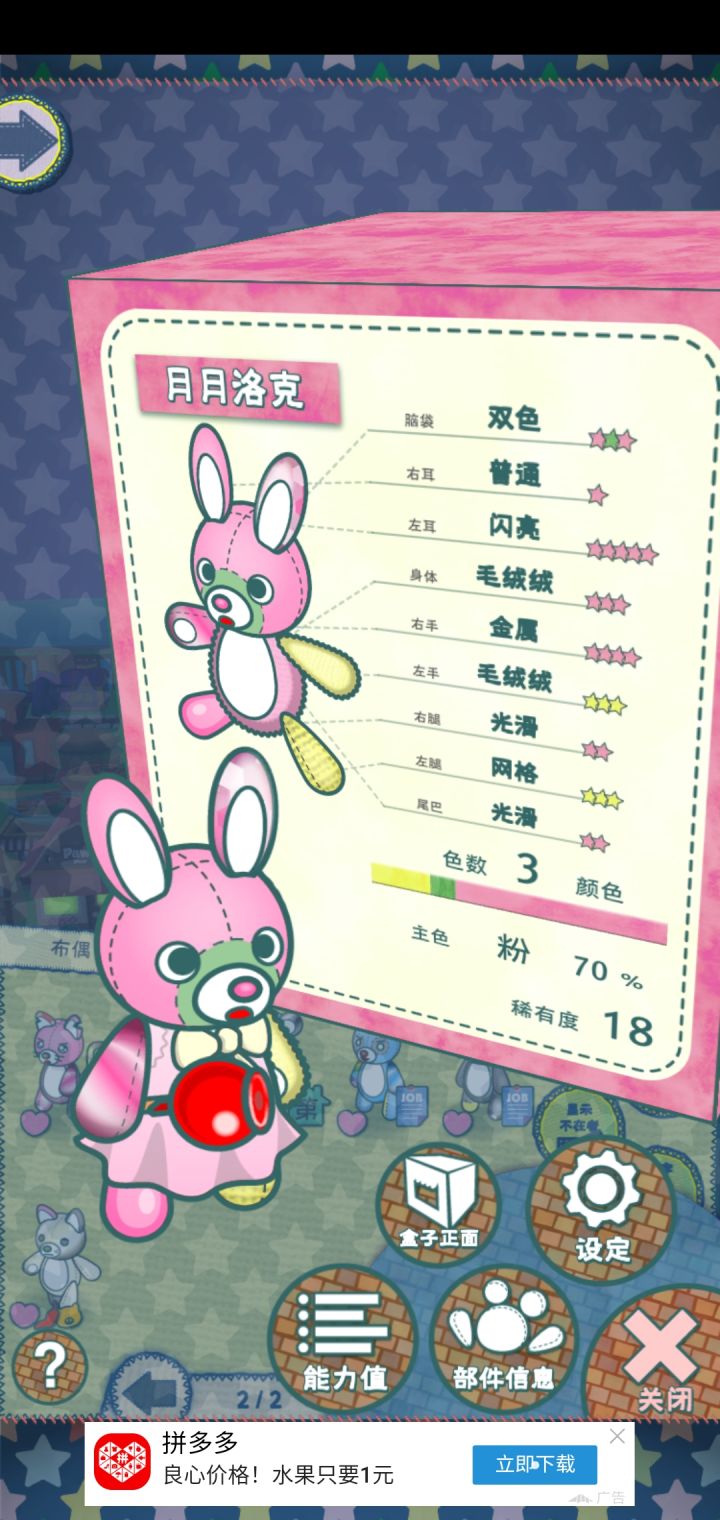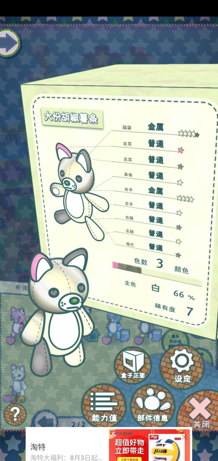 哇,第一次从娃娃机抓到这么好的,这是升完级后的把他送去兼职说不定能把属性叠满哇,我以为要想有满属性只能去挖🐒