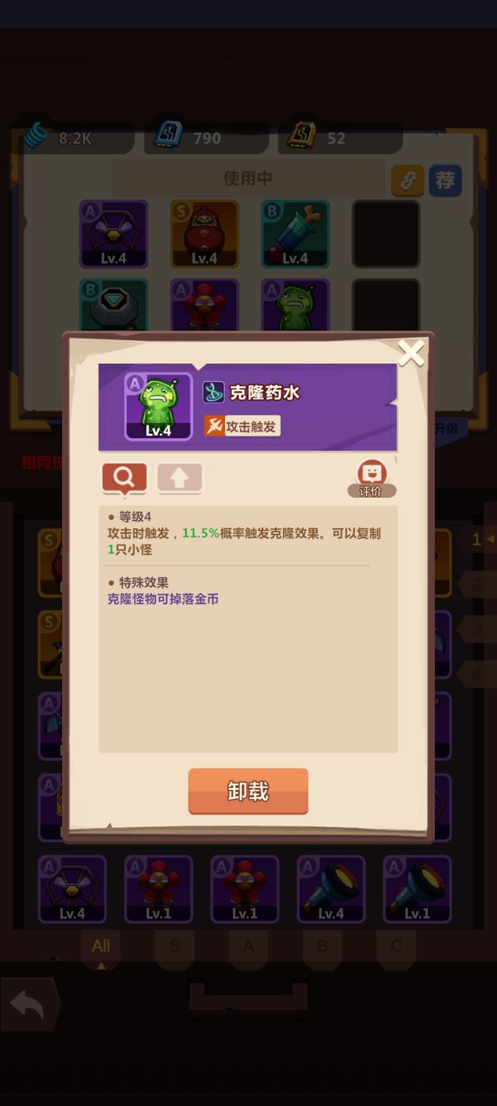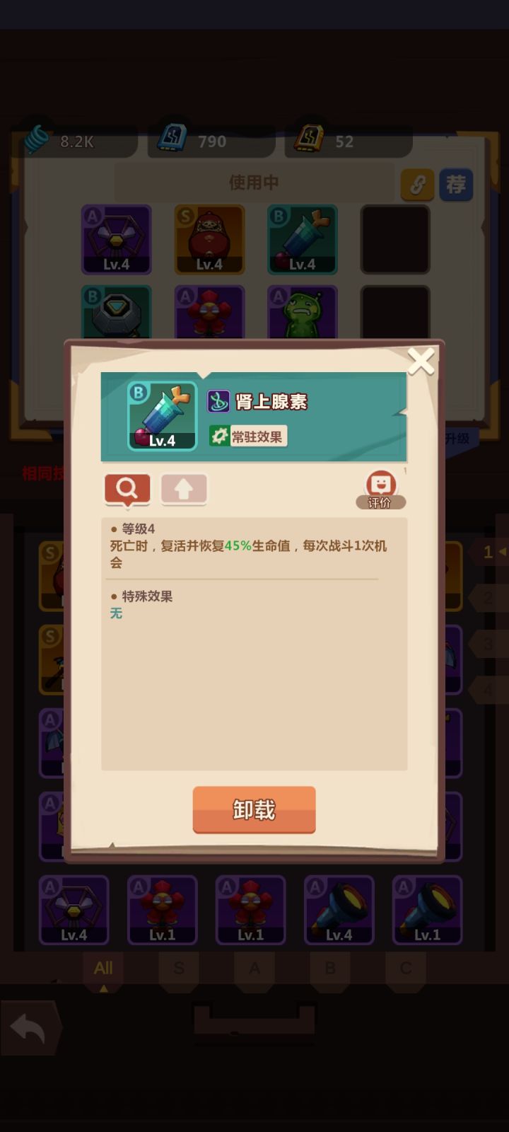 这六个装备,他们的技能唯一还是多个可以一起触发,比如肾上腺素,我装备八个是不是有八次复活机会克隆八个怪生命盆栽低于百分之20血直接,触发⑧次恢复或者有40次回血机会农场的加速,我放两个是不是可以享受两个百分之五十的加速效果粒子盾和浮马,叠加八层护盾如果不是你可以在装备描述里面加个唯一效果,不多次触发,毕竟你下面可是红色标注了相同的技能效果可叠加,很误导人😅