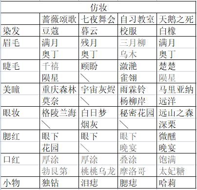 呜呜呜我来试图还原直播仿妆了我上周是【自习教室】评价是似曾相识这周是【天鹅之死】85分评价完全一致像我这种纠结症犯了的99秒根本都不够啊表格里灰色字是不太确定的 黑色字是比较确定的❤️看在楼主这么认真努力的份上不点个赞留个言嘛❤️对比图附上⭐蔷薇颂歌⭐七夜舞会⭐自习教室⭐天鹅之死幸好截了个图下来楼主真的尽力了对着小图越看越觉得自己眼神不好使大家仅仅当个参考吧如果有人