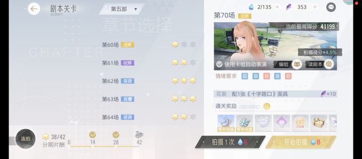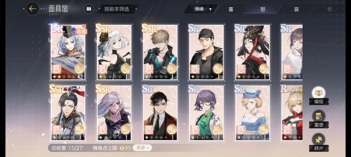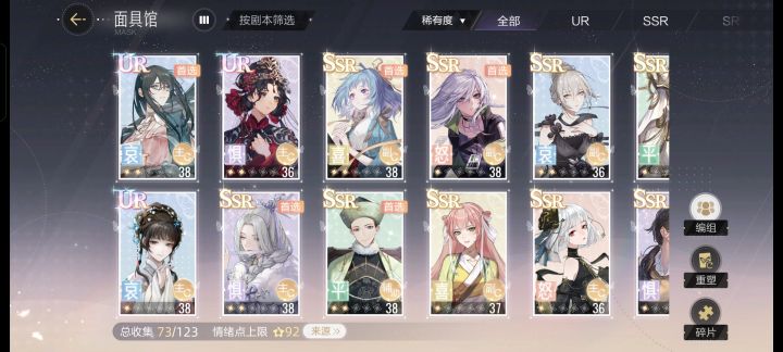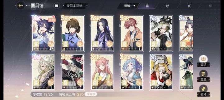 💗面具分为喜、怒、哀、惧、平五种💗初期养成思路:给五种面具升级时,将资源分配至现有最高品质面具💗分数计算规则人物及面具属性是提升表演分数的基础在演技、灵感、魅力、学识四种属性中【魅力】影响拍摄的情绪得分、表演得分,以及灵感迸发的额外得分【学识】影响拍摄的情绪得分、表演得分,情绪点上限越高,学识提升的得分越多【灵感】灵感越高,触发灵感迸发概率越高【魅力】魅力越高,触发灵感迸发得分越高