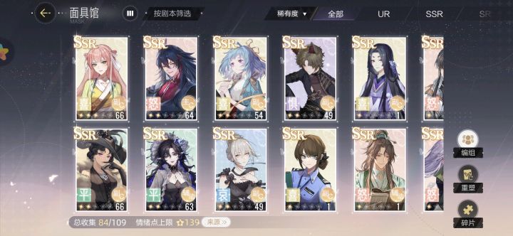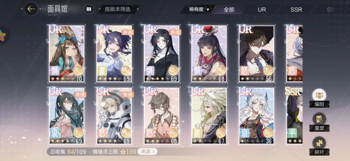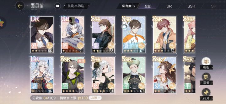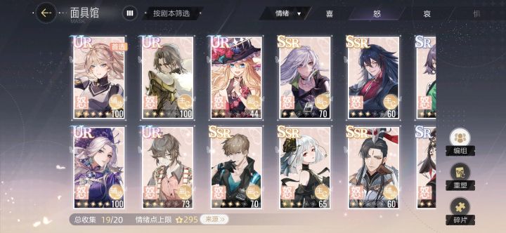 前言:绝对演绎的面具属性差距不大,问题就是每种情绪最少需要一张面具,玩到后面一点每种情绪需要三张面具,而且卡牌数据可以重置,也不用怕养错卡。下面的排行榜可以参考但主要还是根据自己抽到什么来看,【哀】免费给一个“SSR叶瑾”,日记里第三天【怒】免费给一个“SSR面具之灵”,【喜】免费给一个“UR谛羽”,这三个一定要养起来,很容易获得碎片突破。UR之间数据差距不大,实际上抽到什么养什么就行了,金