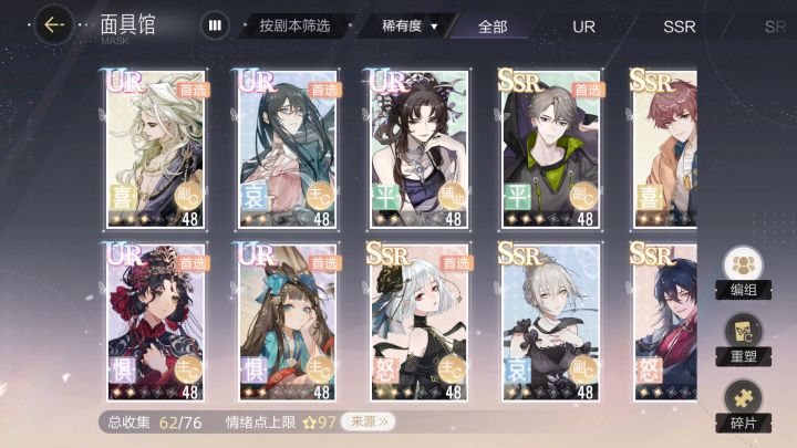 刚刚回坑,有没有大佬推荐一下各位置该培养谁,或者是哪个位置的面具不太行,需要抽别的。