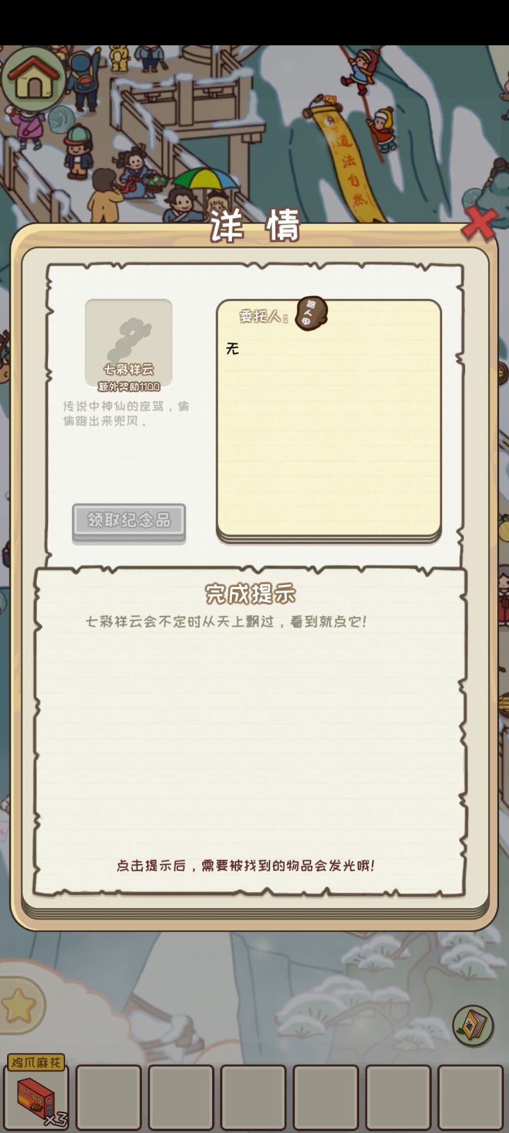 因为有些物品太小,太难圈出来,所以直接上了官方攻略的文字,见谅!水晶奖杯点击图中红圈里女孩,猜测赢得选手是三号(图中黄色圈的)黄梨花佛珠图中红色圈住的门进去,点击里面的僧人。烧香技巧:先点击第二根香,等它烧的和第一根香差不多的时候点击第一根香;等第一二跟香烧的跟第三根香差不多时点击第三根香;等1 2 3根香烧的和第四根香差不多时点击第四根。(判定不会很严,差不多就行)珍珠项链点击图中