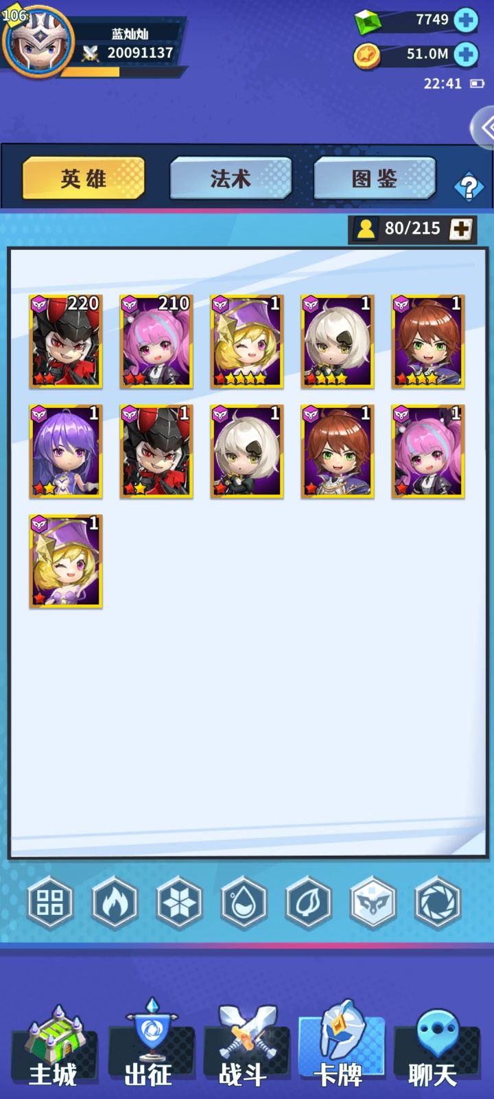 灿灿零氪,佛系集卡,极限推图。首先说一个前提,R43和44区享受了开区扭蛋维护补偿的10个四系自选箱子+100抽扭蛋抽抽。一,进度。主线13天31章,本来想说的是等推到30章的时候发,结果从29推到31了…………想一想以前R15区伍池号的22天30章进度,吃完了整个春节福利(春节福利肯定是碾压R43区的),但进度依然落后差不多10天,这就是版本更新和技术更新的力量,主要是技术更新,嘿嘿嘿……二