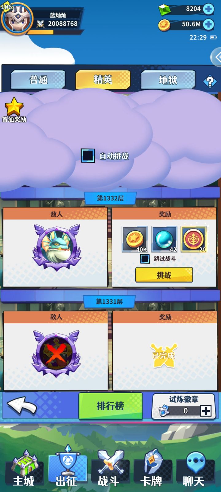 R15区开区第四天啦,持续更新零氪草法玩家的坚持。主线:进度17-35,借卡仍然没借到,大佬不多还有些小伙伴借了没反应,可能还不知道游戏好友里有雇佣军系统,可以借进借出吧(大佬们,看到了赶紧进游戏看看吧,借出也是借呀)……推线核心仍然是草法,副C由零八变成了魔导,聚怪搭配暗法提供的易伤和法术的群体控制,杠杠的,水骑提供前排和减伤回复,17章几乎全程手动,这个阵容小怪可以全程不开法术,到BOSS以