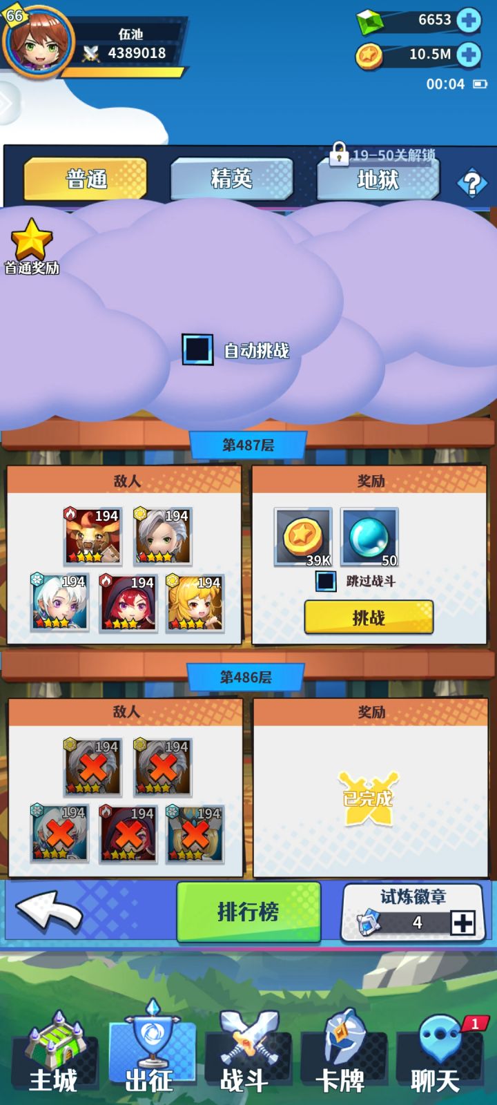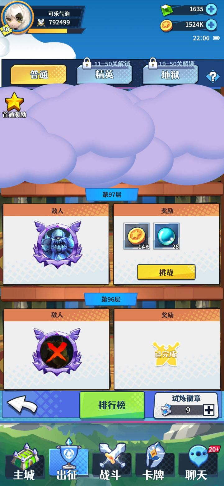 R15区一周结束了,后续就大概都是常规活动任务一些基本的数据看图,主线19-34,7天都没打进第20章,再想想别人第二天就20了,超能力强无敌。塔到了487,实在打不过懒得换来换去了。本区氪佬不多,各种排行榜维持在7-10之间,某些特殊的能前三,比如水草元素塔都在第三,零氪这数据不弱吧(赶紧学呀,哈哈哈)谈一些推线的技巧,阵容方面不用固定死的,推进的卡图有的缺肉有的缺输出有的缺一个辅助控场,一