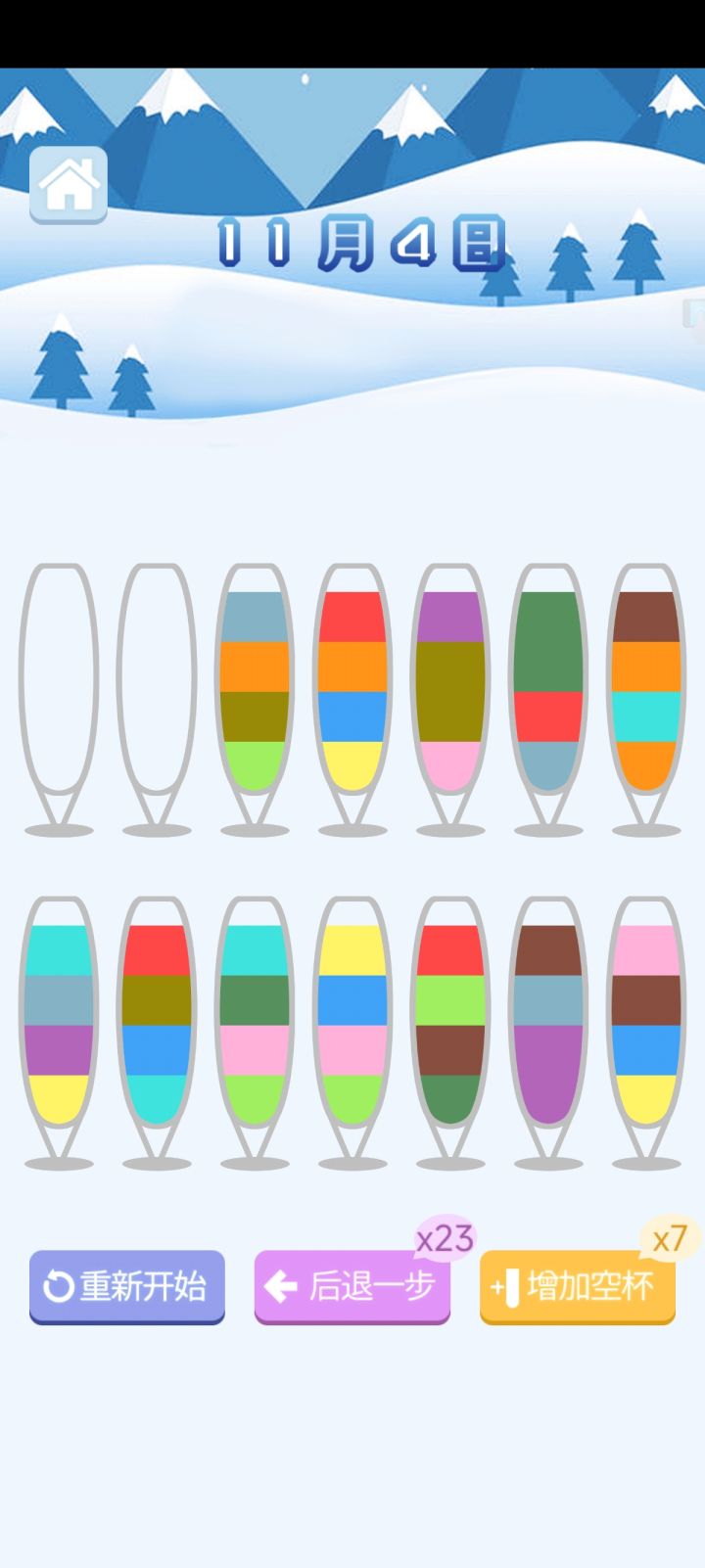 水排序谜题我是前几天通过朋友才知道这个游戏 的,后来在那个小程序里面玩 ,刚开始挺简单的 ,到后面的时候要一定的能力才过关 ,我玩这个游戏有的时候会卡在一关的时间很长,目前玩到了两百多关吧 。