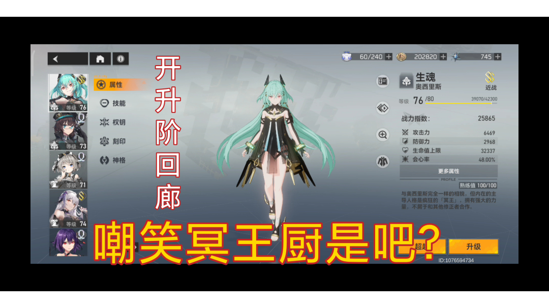 配置:3s+1专,刻印135雷246新怒,神格中三;跃迁,12号位7近战4演化4念动,34号位7喋血7唤灵,56号位4动能3怒体。