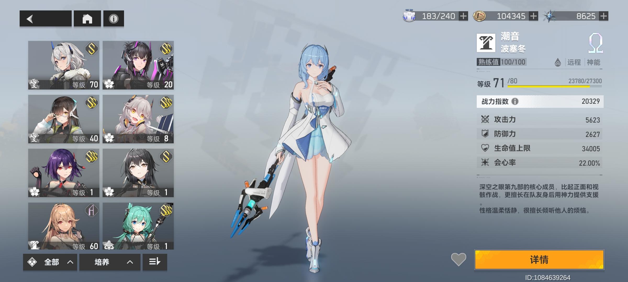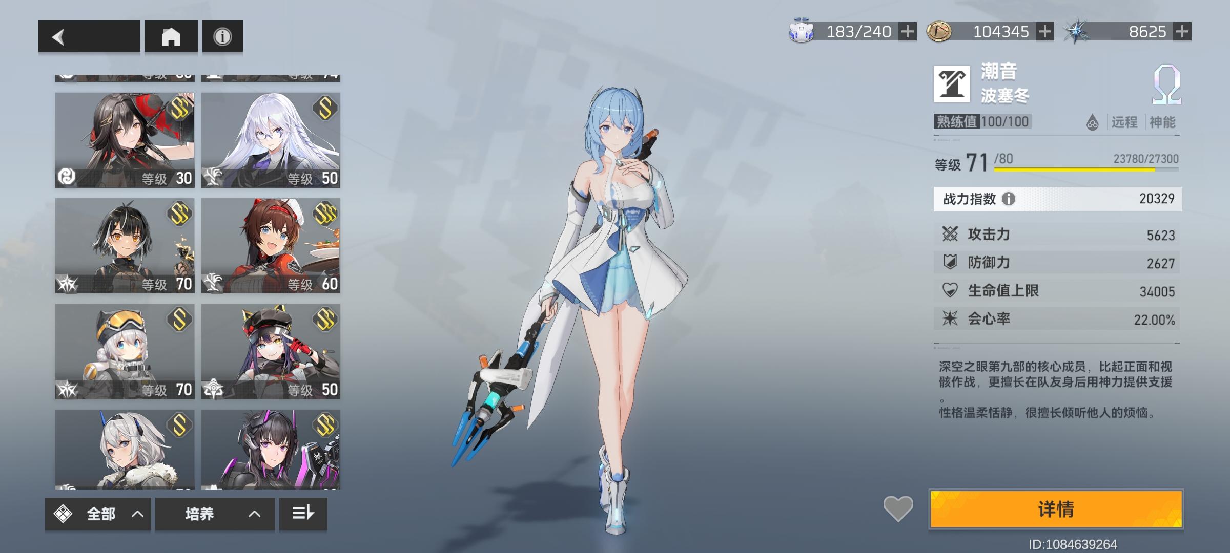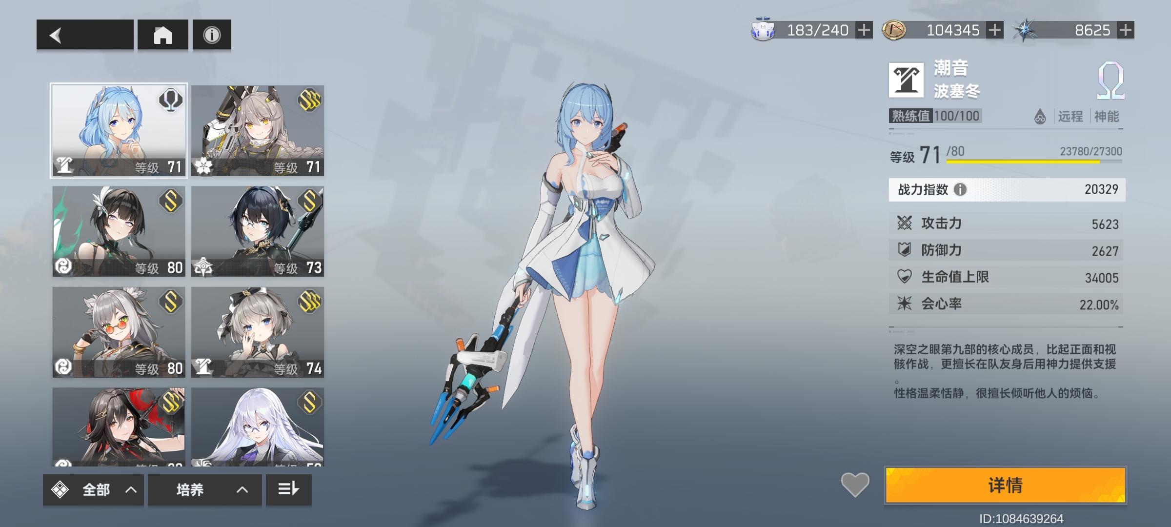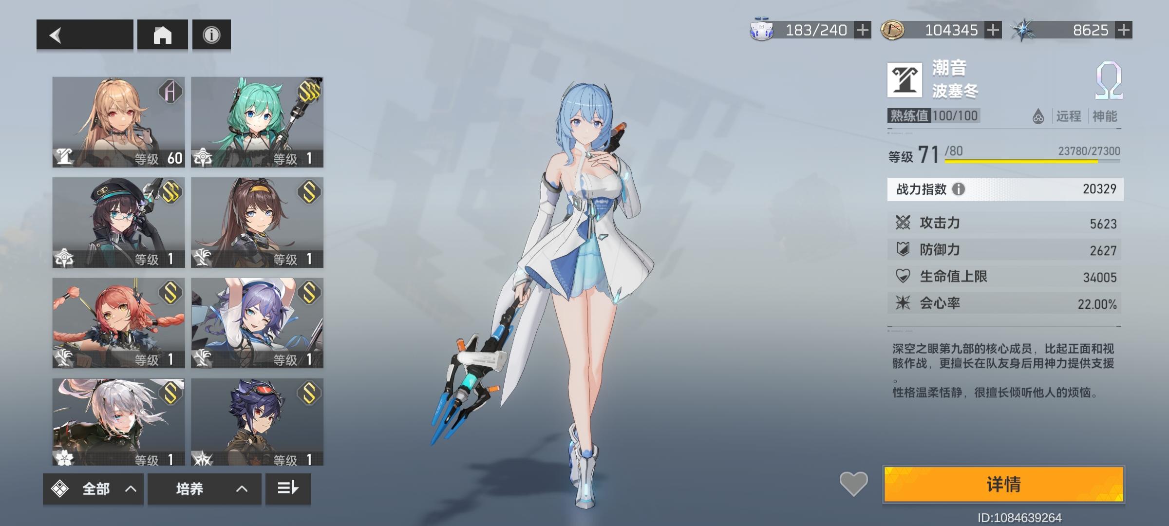 一年多以前斩浪版本退坑的,前两天又回来了,现在是3S的虫切,2S的海拉,震离,奖励姐(差一张3S),奥西里斯,光提尔,冰渊(差一张3S),还有单S的斩浪、娜美(稳上2S差二十抽就保底了)、陵光、大国主。其中海拉,震离,奖励姐,奥西里斯,娜美有专武。应该怎么配队,怎么练啊,优先练谁比较好啊!!!#深空之眼#求解答