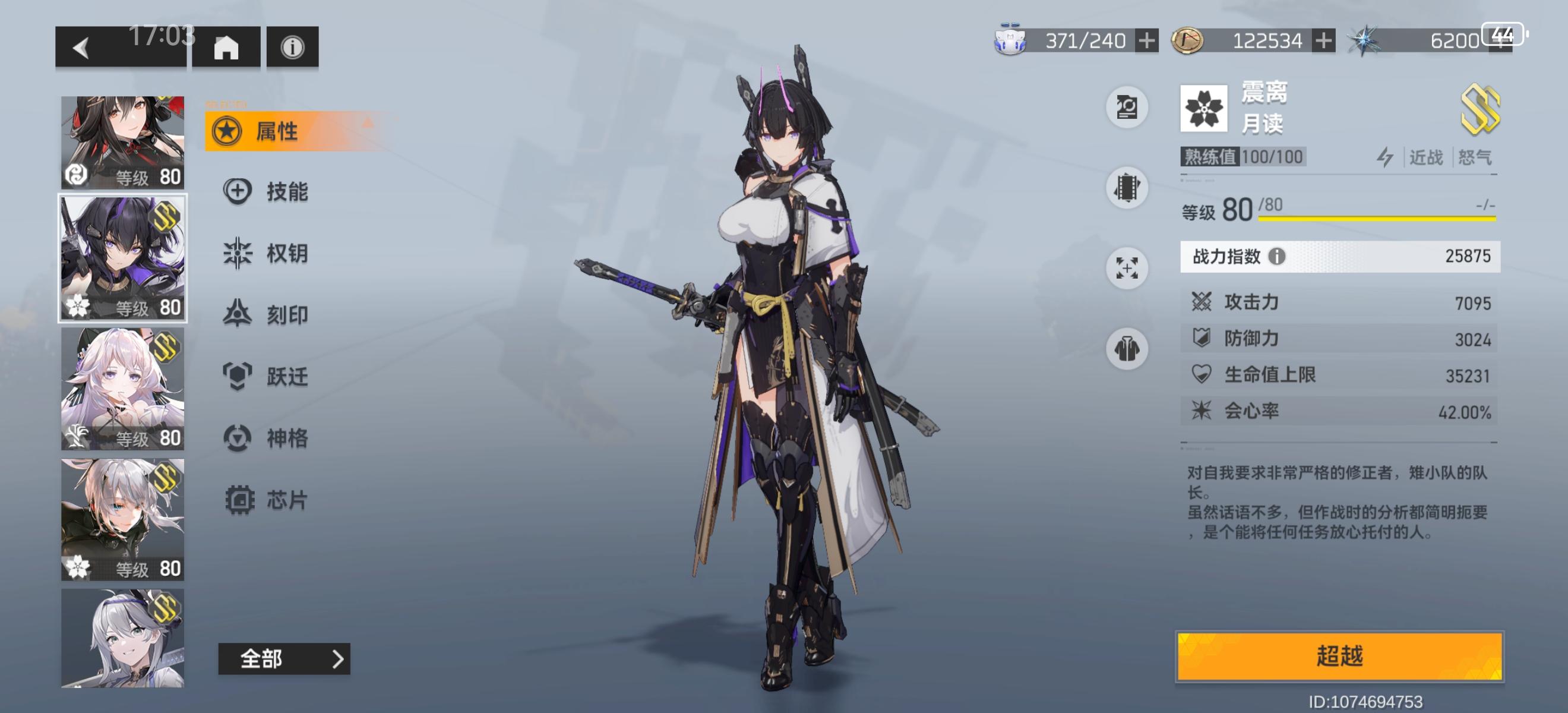看评论很多人都说震离怎么怎么弱 怎么怎么不行 但是我玩下来感觉很正常啊 也没他们说的弱到哪里去 黑20也照样和金陵赫打的大差不差的 专武也是有的 但是没有金乌高而已 跃迁也是同样都点满的 神格也是全红 而且我个人感觉震离启动比金乌快很多 当然没有说要引战的意思 就是单纯不理解很多人为什么说震离弱
