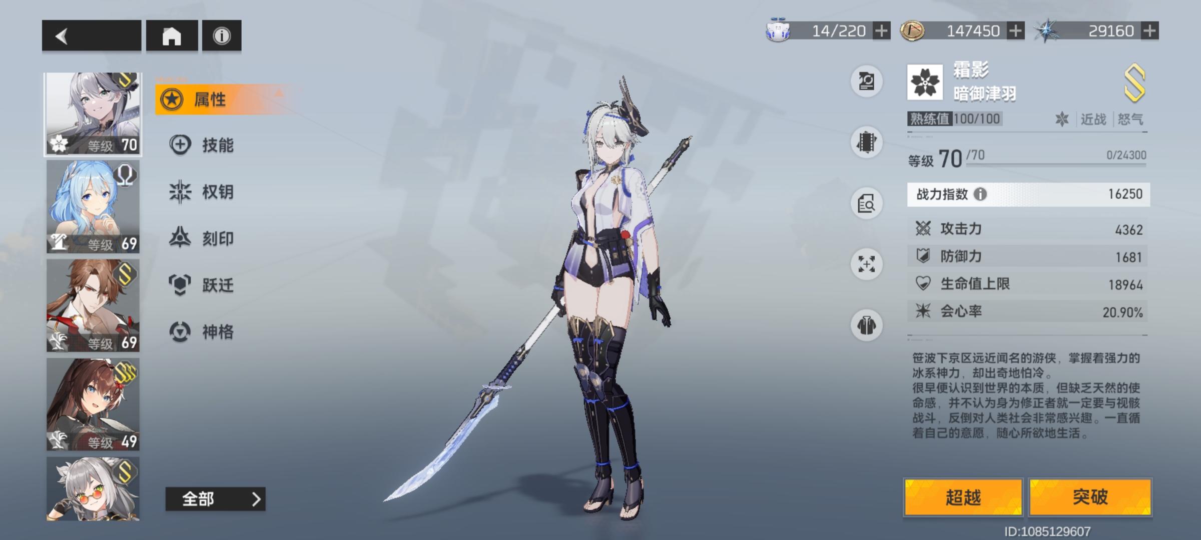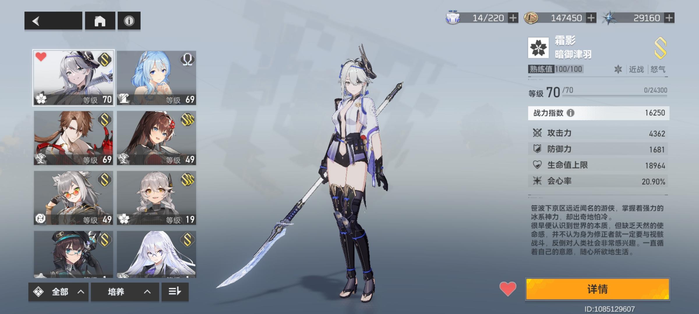 如图,霜影出了之后,听大佬说丝卡蒂成T0了就把她俩都梭哈到2S加专了,太非了,把辉造了大半但是之后才知道下版本是新的冰C,有种被背刺的感觉。。我的角色和资源是这些,还有十张蓝票,我是梭哈光赫拉的池子,还是攒辉等下版本或者以后?