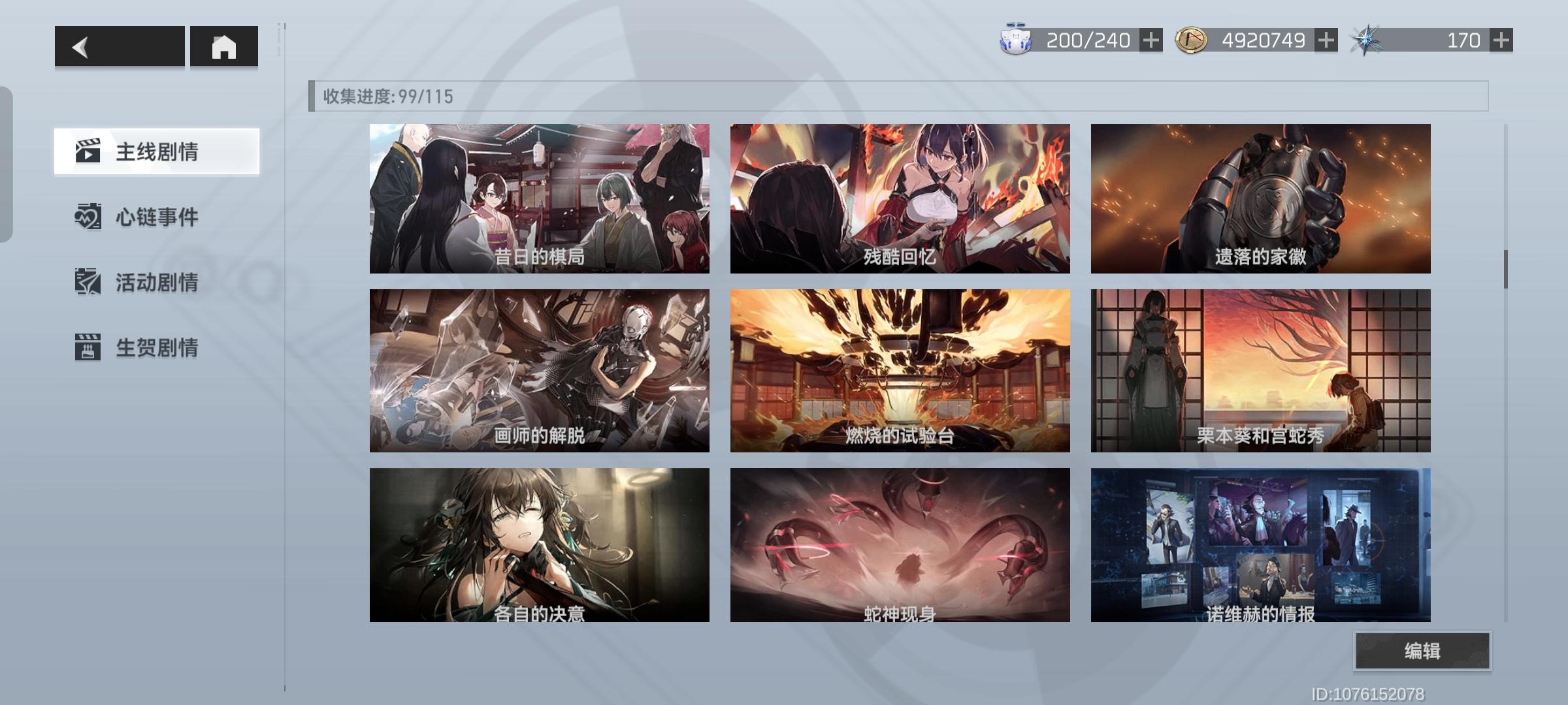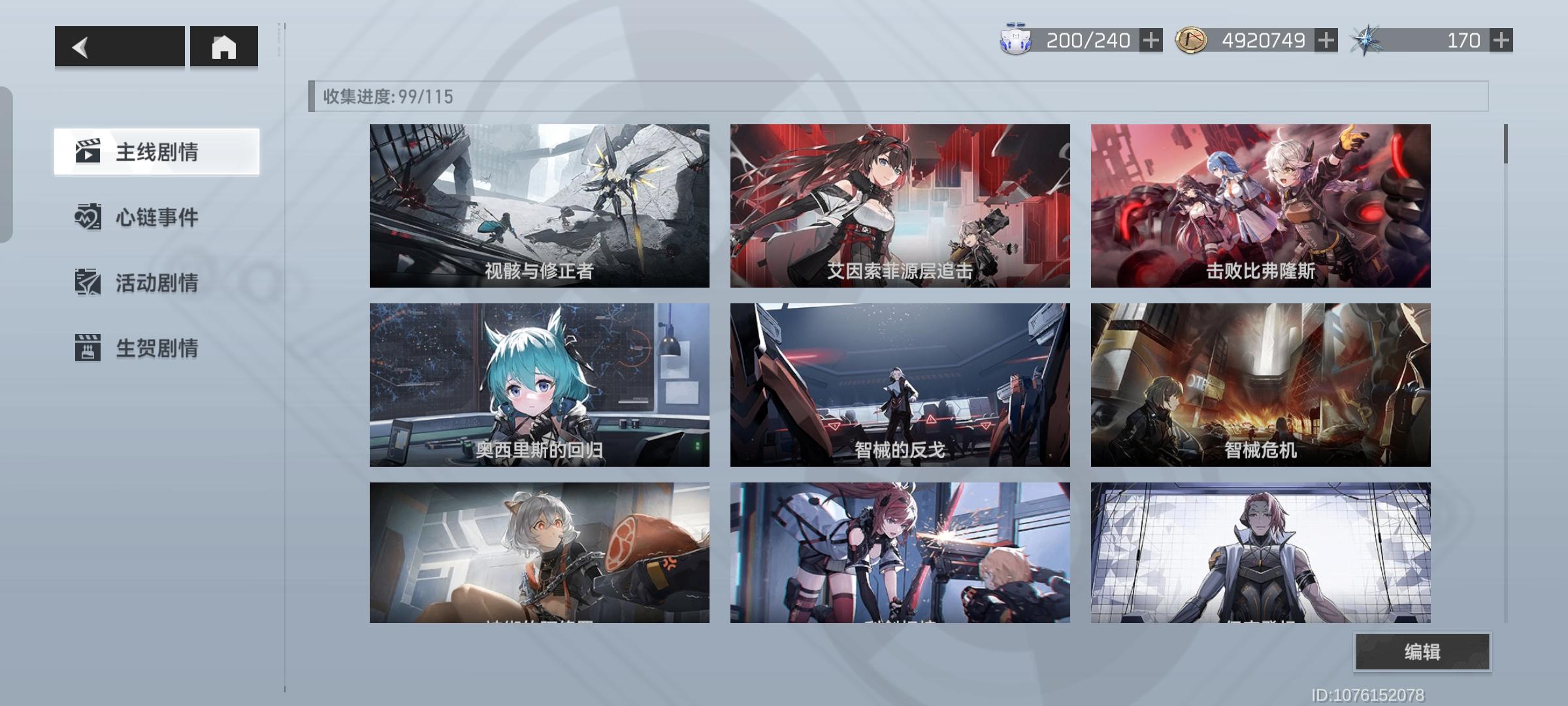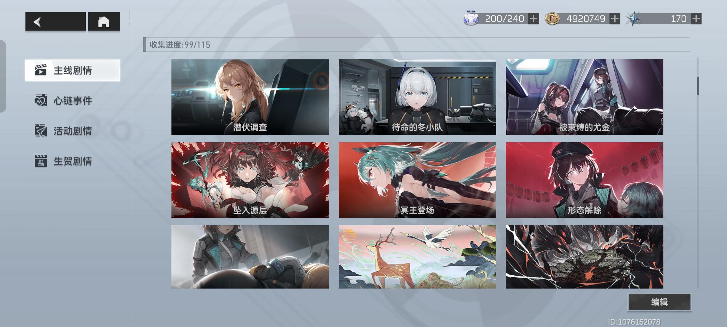 主线全通关,但是还有一些插图是后来更新的,没有解锁,现在不知道在哪关解锁,作战目标里面也有一个人形没有解锁