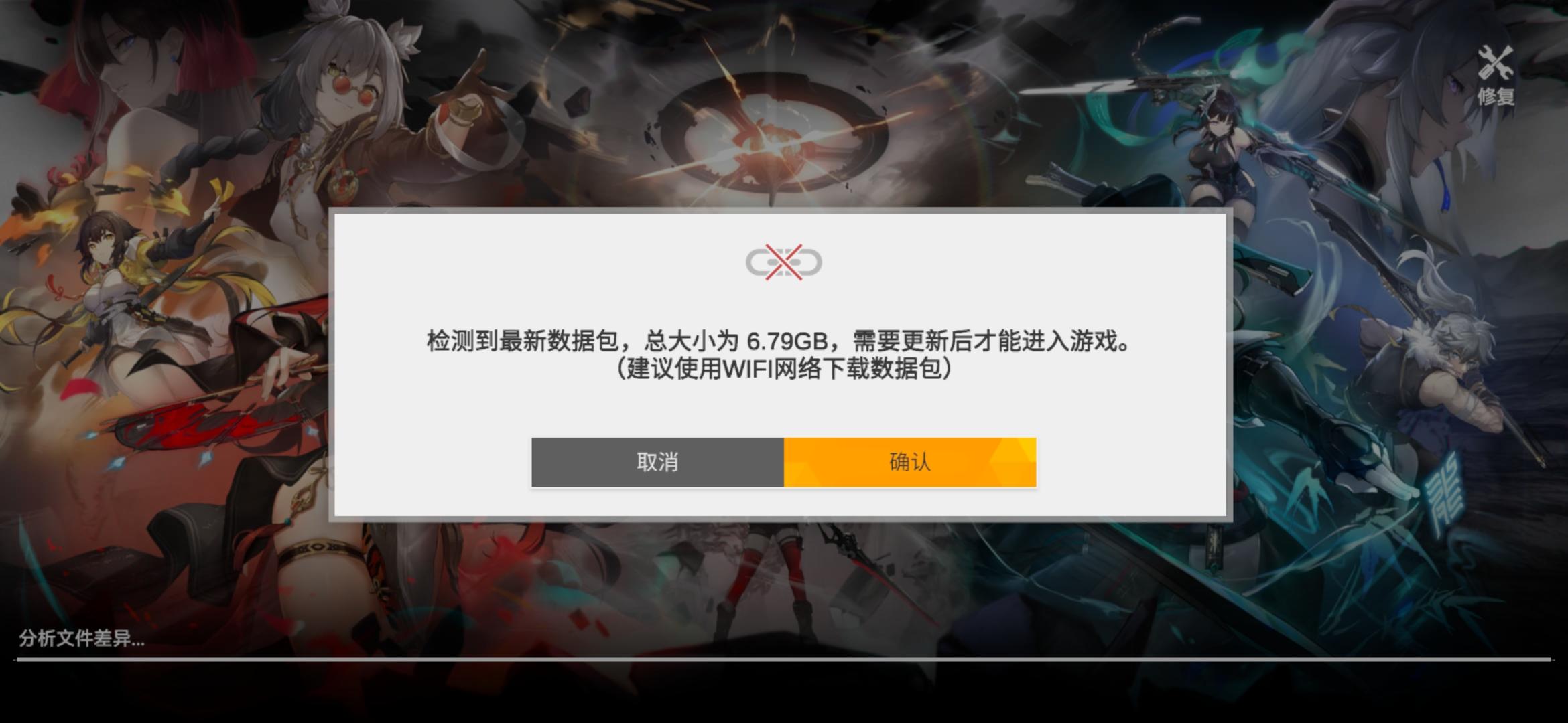 游戏上不去,点击修复让我更新,更新完还是上不去,还要更新(图1)。然后重启手机在登录就这样了(图2)