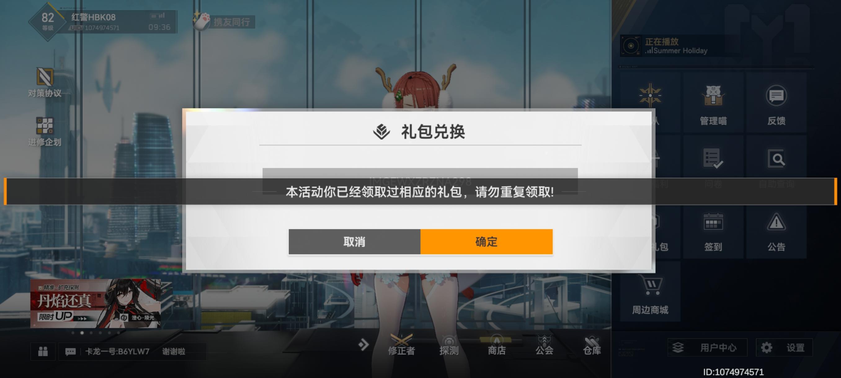 地毯兑换过后再兑换弹出的提示如图1但椅子的兑换码是没使用过的却弹出了图2的提示,没看到活动有说明联动家具只能换一个啊