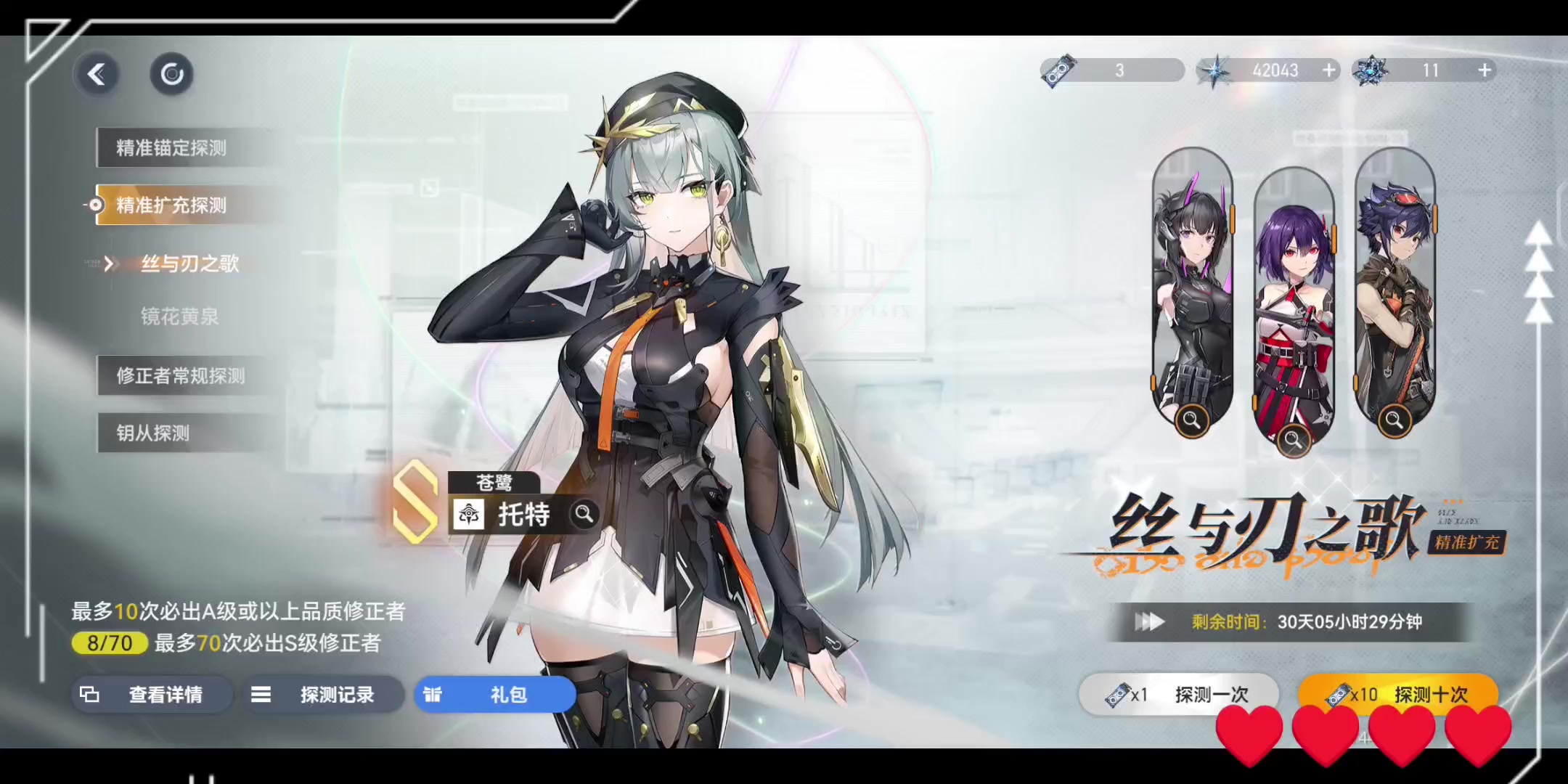 今天送的十连出金,加上之前的已经连续5次10连都出金了