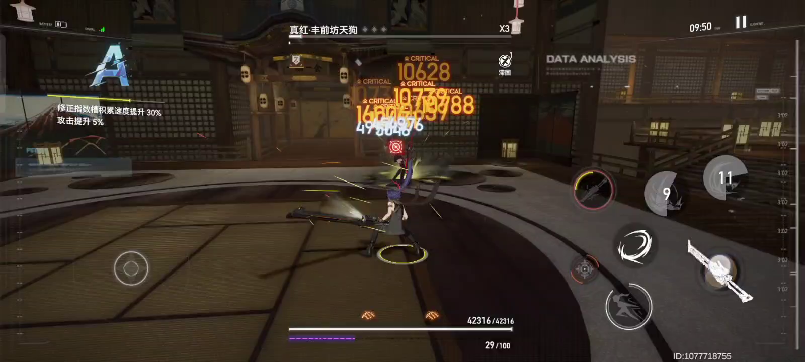 没想到这两个组合起来还挺猛的,而是是真的肉,应该是大眼目前最肉的boss了,boss的配色和环境都是红色的,打起来看不清boss的动作,所以会畏手畏脚的,凹了两三天,实在打不进一分半以内,不得不说胡狼玩起来是真的累