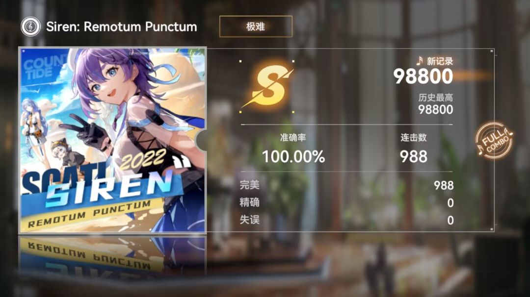 本次音游活动最难的谱面。 据我群里的大佬说,这谱面有马老弟常规3dan难度。 这就是二次元手游的音游小游戏吗(∧ ∧; 不过最后还是收了,虽然1精确了好几次(笑)