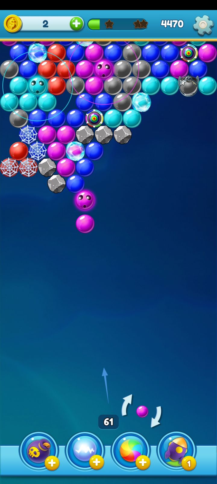 泡泡珠全都清完了(3次),始终不提示通关,手机屏幕可显示区域看不到需要清的泡泡珠,用炸弹特效随机方位发射,都显示在左上角炸开,用火箭特效随机方位发射,则直接卡顿了,只能直接退出。