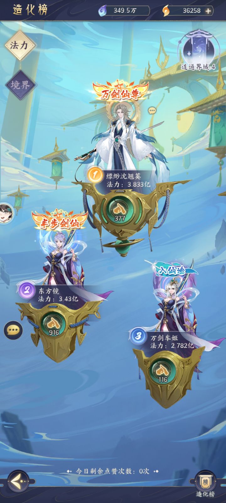由于好奇800抽送的飞剑怎么样,而且离满足条件也不远了,就抽了一下,飞剑外观也不错,还加属性,就是战力加的不多,才加十五万左右,个人感觉没多大必要硬抽!!! 新服第七天,小白日记,纯零氪玩家,目前战力三千一百多万,早上第十个飞升的,日常资源拉的比较多,个人习惯问题,存不住东西,不适合慢慢养成,属于今朝有酒今朝醉那种。如果有兄弟零氪,不要和我一样,要沉住气,把仙晶用到朱雀等身上!个人观点,不喜勿
