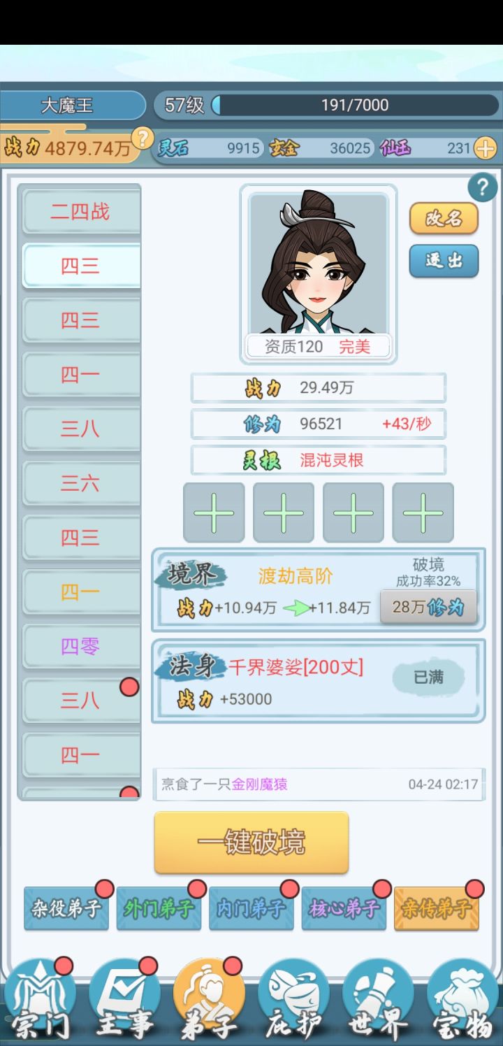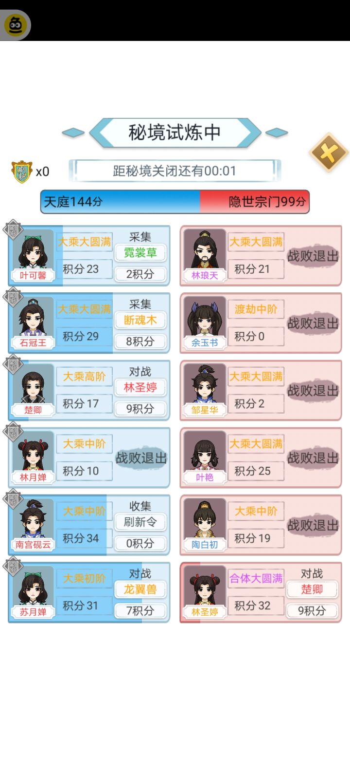 不停的派固定的人去游历,不停的学功法、学丹方、签约圣兽。培养固定的6个人打秘境。这是我培养出的主角和五虎将。