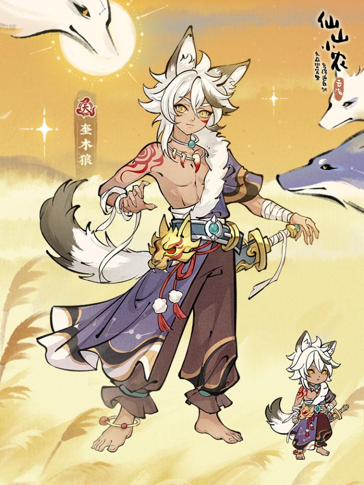 【天级角色奎木狼】角色:奎木狼五行:金技能:收获、播种、浇水战斗技能满星预览:爪牙之利唤醒狼灵,置于主角身后,狼灵每1.5秒1次,持续向主角面朝方向的敌人释放1道冲击波,沿途造成150%的伤害。冲击波大小会随星级增加。狼灵在主角移动过程中也会自主进行攻击。天赋技能满星预览:1、增加10%宗门贡献。2、与奎木狼的好感等级每提高1级,提升18点攻击力,最高提升180点攻击力。人物故事