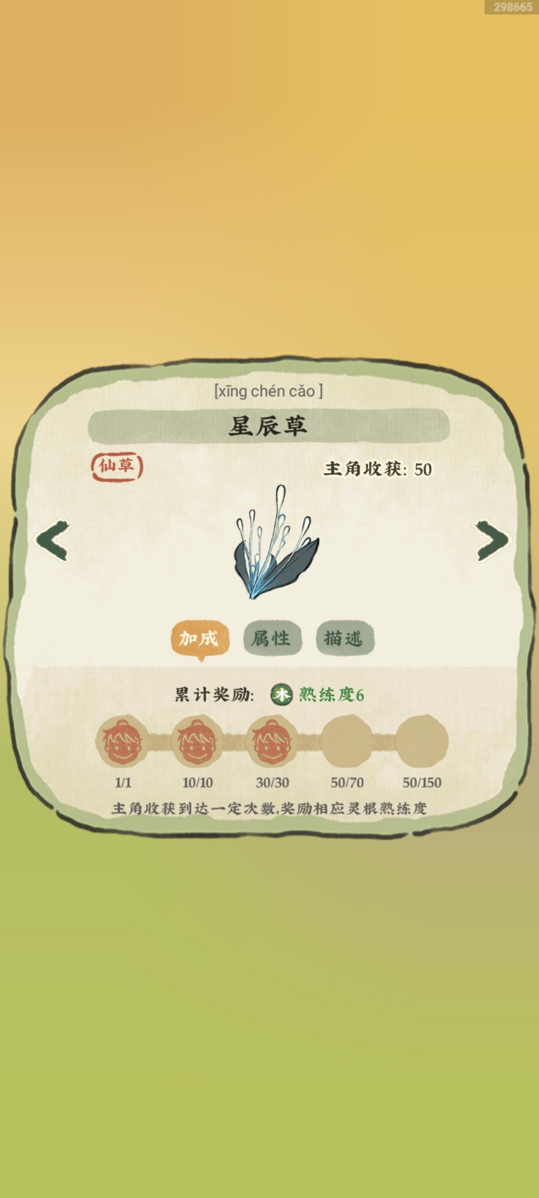 星辰草籽种子介绍是可收获三次,实际只收获一次就没了,本来想着50种子就满收集度的