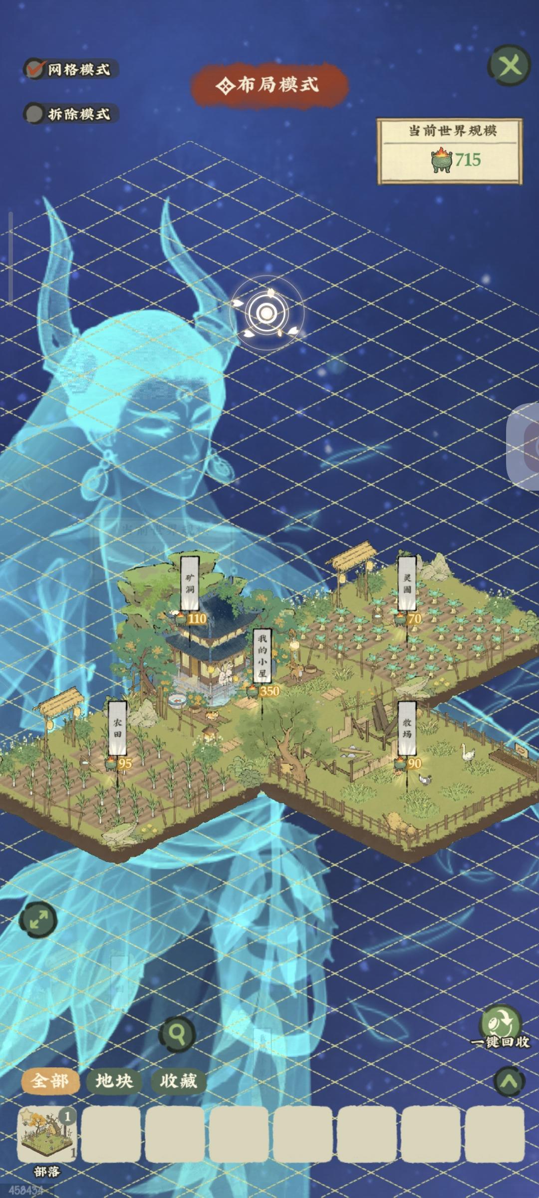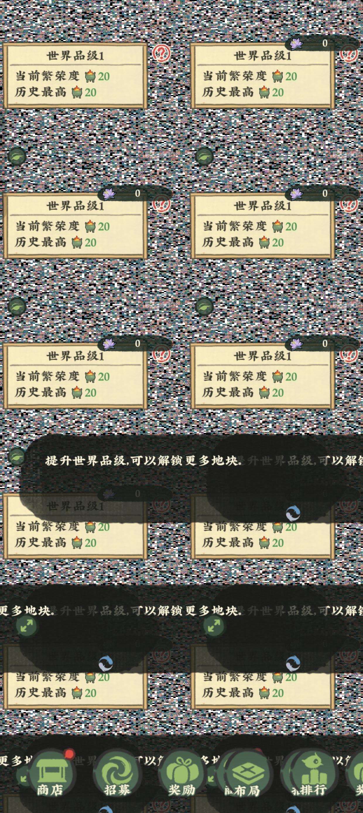 游戏出了bug,我自己使用了修复无法解决,退出游戏等操作依然无法解决。bug原因,宗门升到十阶,主线任务给了我一个部落草门,使用后进入小世界,我尝试摆放一些建筑和设施。发现装饰建筑可以摆放。同时一些功能设施下面显示也能摆放。我就摆了磨盘,我发现可以摆两个磨盘,又试了纺纱机,但是我发现这些设施建筑无法正常使用,我就把它们收起来了。然后离开小世界,到了外面院子里,打开设施发现我收起来的设施还在。我就尝