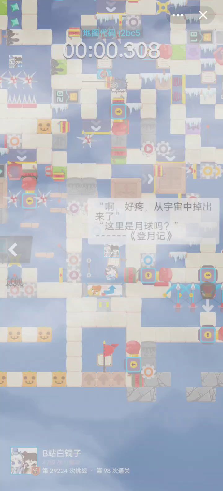 这是参加官方【异世主题】活动的一张解密(更像跑酷),通关攻略提前放在论坛的【游戏攻略】区了,欢迎各路大神来挑战! 发起挑战:双人游玩难度会大幅度增加(路人局),若双方已熟悉地图结构,可以尝试速通,速通的截图可以回复至本帖。截止至10月31日,最速保持者(仅限回帖,若速通组排名第一但未回帖视为作废,若前三名均未回帖,则按照帖内最速结算)我会通过私信的方式给予10元奖金! 这是我一个朋友(视频中榜二)对这个图的评价: ﹝物理学不好过不去的哈哈哈﹞