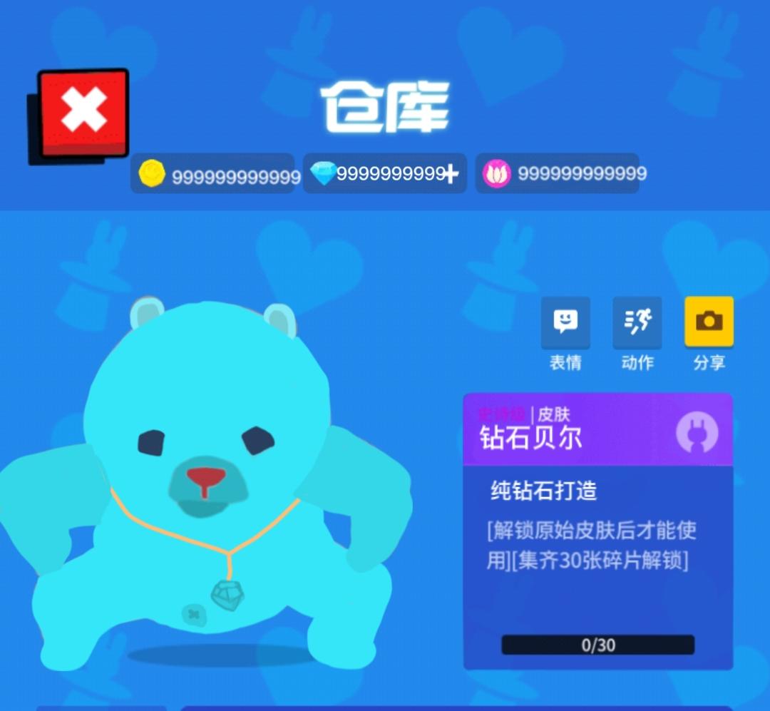 本以为上次那个印花奇克就足够把别人创死了,结果现在又来一个钻石贝尔,已经被二次创死了贝尔都要说我谢谢你,这肤色堪比隔壁的蓝精灵,给人生理和心理的双重不适,关键每张碎片需要30个钻石,900个钻石就买这玩意儿?