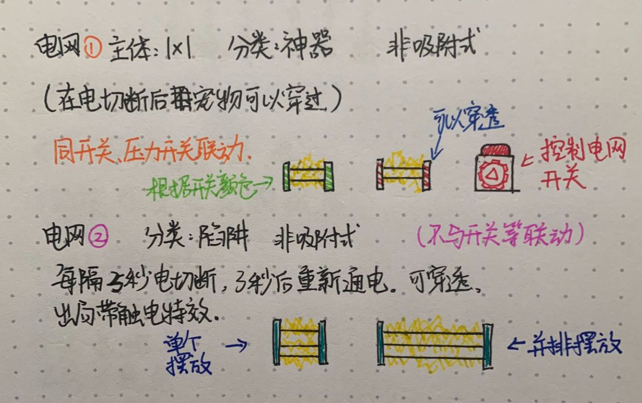 类似于缆车终点上方的电网,电切断后不占体积,任何东西都可以穿过。电未切断时,子弹可以穿过但宠物碰到会出局。