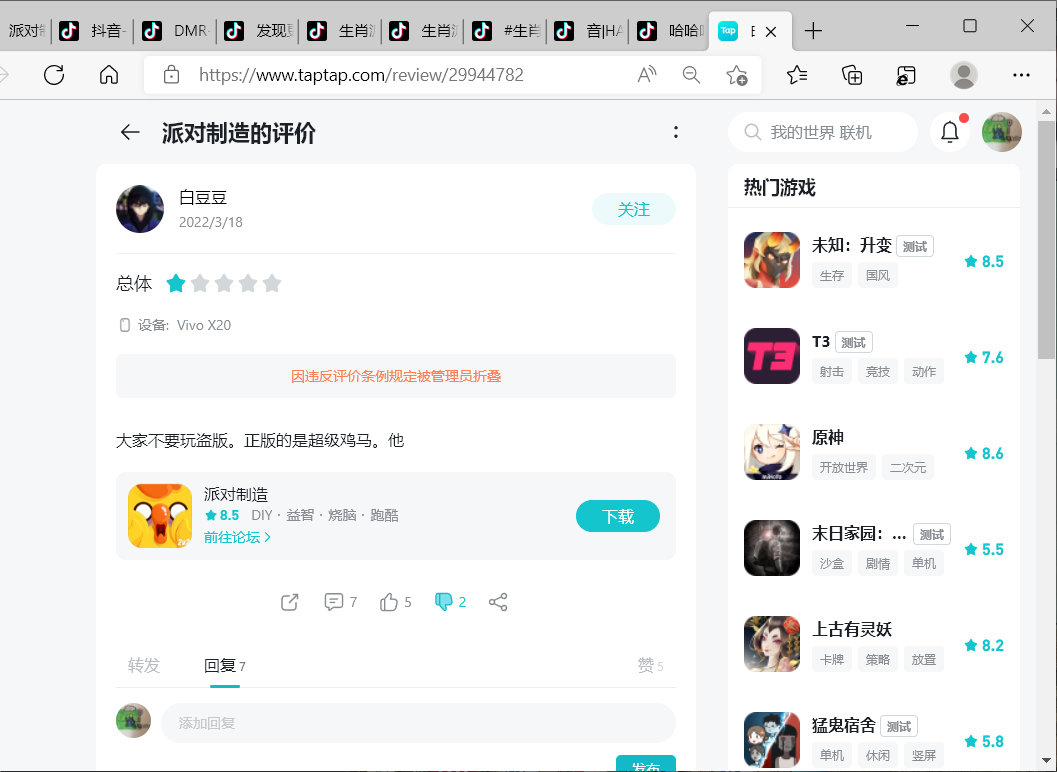 这应该是派对第一个被折叠的评价了也是目前唯一一个