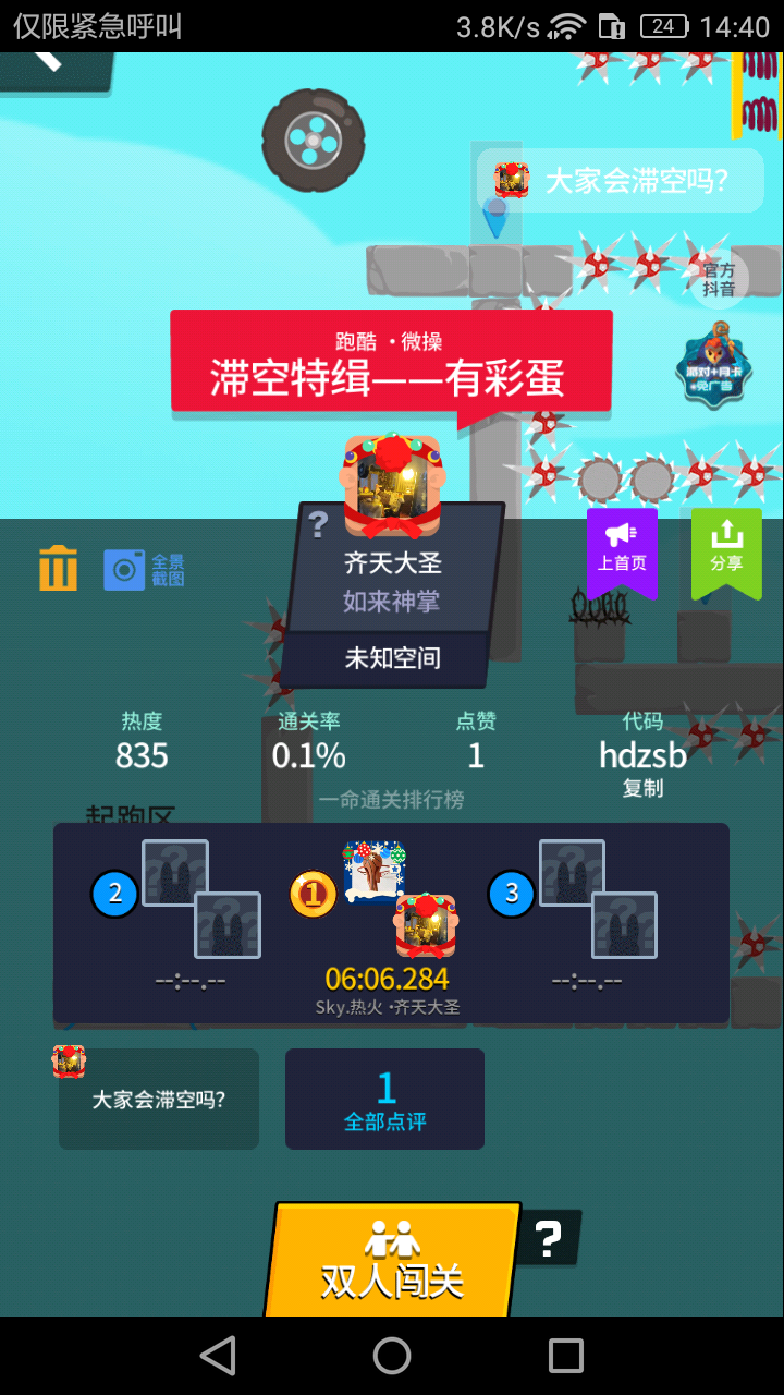 感谢@Sky.热火!已经过了,且已发布。通关率可能以后会变成≤0.1,欢迎来战!